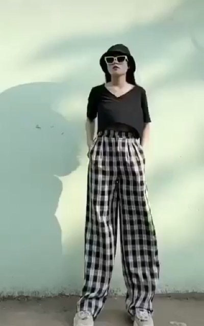 Bộ sản phẩm: Quần Culottes Cúc Cảnh – Cul xuông dáng thụng kẻ ô lưng cao TRENDY.