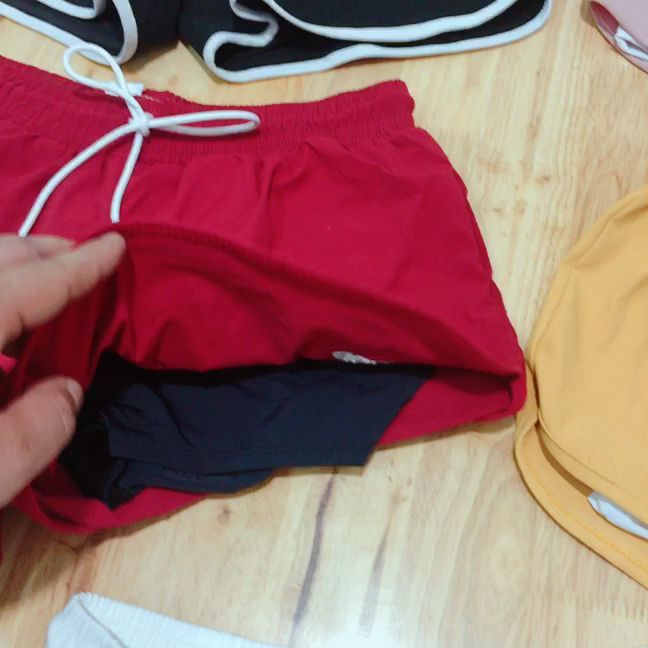 Bộ sản phẩm: Quần đùi nữ vải dù 2 lớp lung thun co giãn thích hợp tập gym chơi thể thao mặc ở nhà đều đẹp.