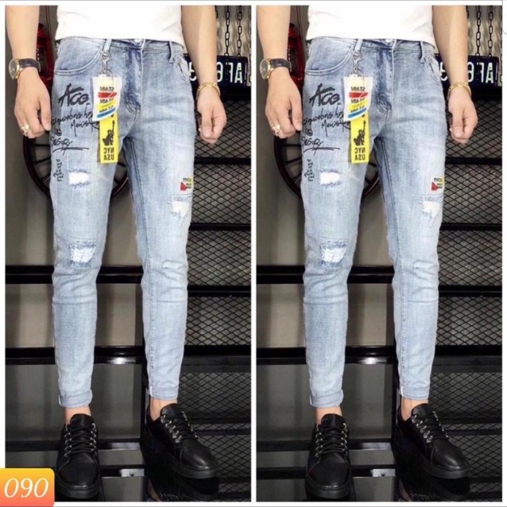 Bộ sản phẩm: Quần Jean Nam Chất Bò AD090TG Xanh Wash Phối ChữCao Cấp Trẻ Trung Cá Tính.