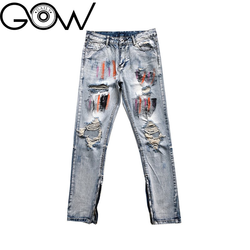 Bộ sản phẩm: Quần jean nam Gowdaily phong cách streetwear có zipper họa tiết vẩy sơn độc đáo dáng Slimfit.