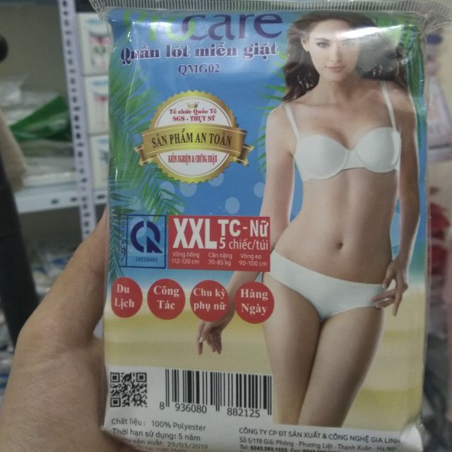 – Quần lót giấy cotton cao cấp Procare (TC) được làm từ chất liệu cotton cao cấp mỏng nhẹ, mềm mại, tạo nên độ thông khí và thấm hút tốt đem tới cảm giác thoáng mát khi mặc, đặc biệt thích hợp khi sử dụng trong những ngày nóng nực, cho phụ nữ mang thai. – Chất liệu mềm mại, bề mặt mịn màng, đảm bảo vệ sinh an toàn với làn da mỏng manh, đặc biệt nhạy cảm của các bà mẹ sau sinh. – Quần lót cotton Procare là sản phẩm được sử dụng một lần hoặc có thể giặt lại. Chiếc quần với thiết kế thông minh cho bạn trải nghiệm sự êm ái tuyệt đối. – Đáy quần được may 2 lớp cotton cao cấp, cho bạn cảm giác dễ chịu, thoáng khí, không gây kích ứng da, rất vệ sinh trong quá trình sử dụng. – Dây thun lưng co giãn tốt tạo sự thoải mái, êm ái cho người mặc. – Là sản phẩm thời trang tao nhã phù hợp với chị em mọi lứa tuổi. Độ co giãn tốt cùng kiểu dáng và màu sắc tao nhã, ôm sát vòng 3, bảo vệ nhẹ nhàng mà không gây vết hằn khi mặc mang tới cảm giác thoải mái, dễ chịu trong mọi vận động. – Tạo nên sự thuận tiện hơn khi mặc váy và tính thẩm mỹ cao khi mặc các loại đầm, quần bó sát. – Là sản phẩm tiện dụng cho những chuyến du lịch, công tác khi không có thời gian giặt đồ. Đặc biệt phù hợp cho các bà mẹ sau sinh. – Sản phẩm đóng gói nhỏ gồm 5 quần M, L, XL, XXL thuận tiện mang theo trong những chuyến đi. Size M, L phù hợp cho các chị em đi du lịch, có tác Size ML rộng hơn cho các chị em mặc bầu, sau sinh