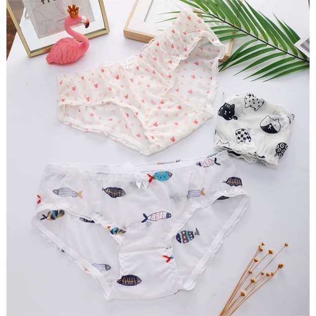 Bộ sản phẩm: Quần Lót Lưới Siêu Thoáng Họa Tiết Dễ Thương Q586.