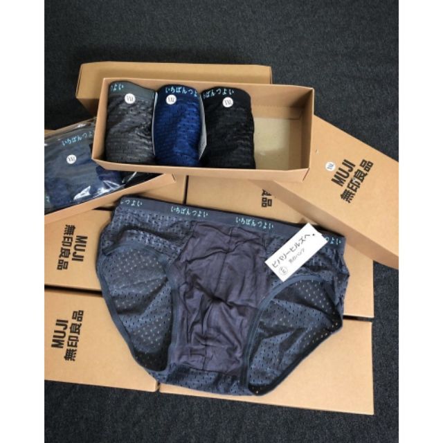 Bộ sản phẩm: Quần lót nam tam giác Muji nhật lưới thông hơi thoáng khí kháng khuẩn.