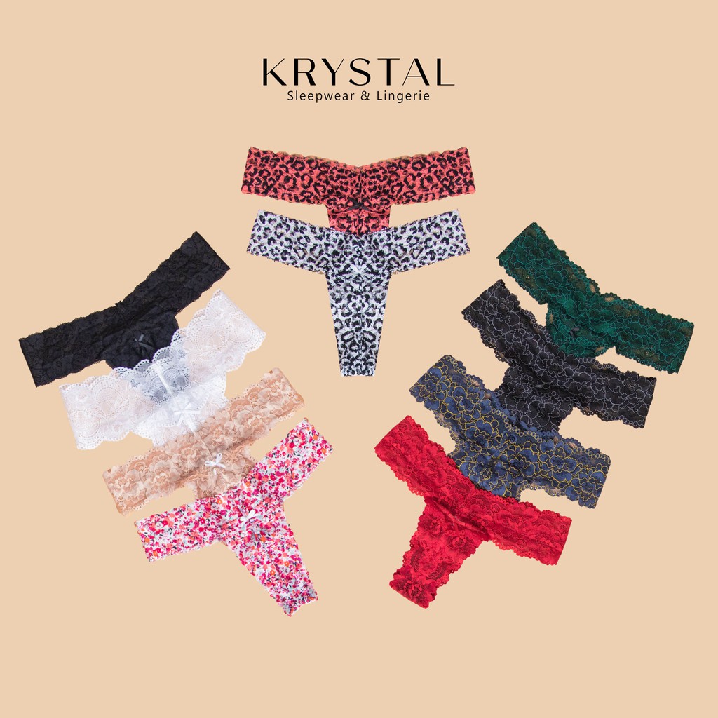 Bộ sản phẩm: Quần lót ren chữ T sexy gợi cảm lưng vừa cạp ngắn màu họa tiết KRYSTAL KQT02.