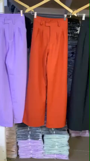 Bộ sản phẩm: Quần ống suông 2 nút siêu hack chân dài màu tím, đen, đỏ, nude.