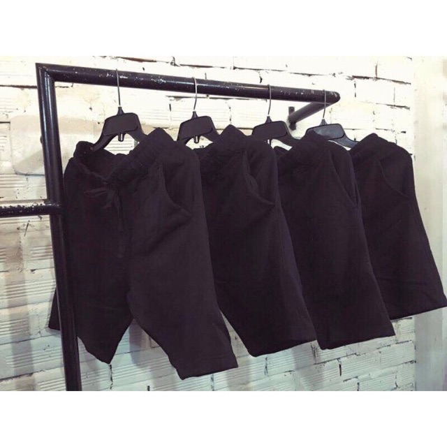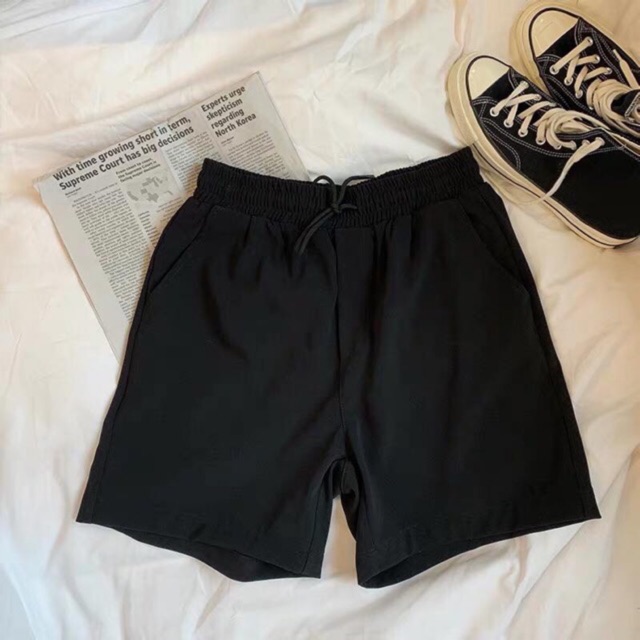 Bộ sản phẩm: Quần Short Basic nỉ Unisex (dây đen).