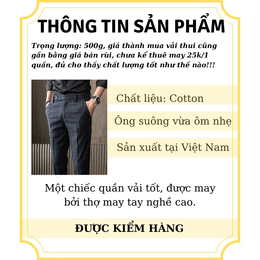 Trên đây là toàn bộ thông tin về sản phẩm Quần tây nam kẻ caro, ống côn, vải cotton cao cấp phối siêu hợp với áo sơ mi, giày da mà shop giới thiệu, hy vọng sẽ làm hài lòng quý khách.