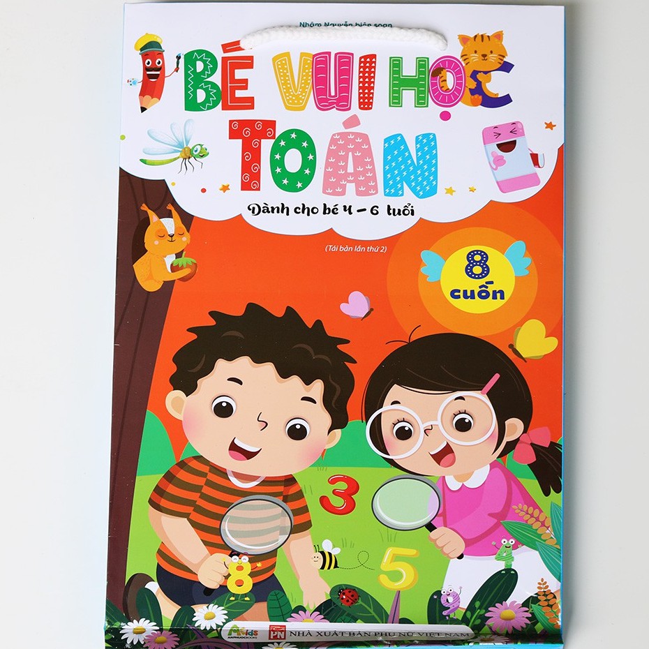 Công ty phát hành: An Phước Books Việt Nam Nhà xuất bản: NXB Phụ Nữ Tác giả: Nhâm Nguyễn Loại bìa: Bìa mềm Số trang: 8 cuốn. Kích Thước: 17 x 24 GIỚI THIỆU SÁCH —————————– BỘ SÁCH BÉ VUI HỌC TOÁN – 8 cuốn Toán học luôn là môn học đòi hỏi sự cẩn thận, tập trung cao. Với những bé chuẩn bị bước vào lớp 1, làm quen với toán là một bước cần thiết và quan trọng để bé không còn bỡ ngỡ và sợ hãi khi tiếp xúc với môn học khó nhằn này ở trường. Với thiết kế ngộ nghĩnh, hình ảnh nhiều màu sắc dễ thương, môn toán sẽ không còn đáng sợ nữa. Bé vừa học, vừa chơi, vừa rèn luyện khả năng quan sát, rèn khả năng tập trung và tính toán. Các bài tập trong sách rất nhẹ nhàng, đa dạng, phù hợp với lứa tuổi từ 4-6 tuổi, bé hoàn toàn có thể thực hiện lần lượt các bài theo sự hướng dẫn và hỗ trợ của bố mẹ. Bé làm quen với số đếm từ 1- 10 Các số đếm từ 1 – 10 cực đơn giản, nhưng bé vẫn cần luyện tập để chúng khắc sâu vào bộ nhớ. Ở tuổi ham chơi, nhanh quên, việc luyện tập nhiều sẽ hỗ trợ rất nhiều cho trí nhớ và năng lực tính toán của bé sau này. Bé vui học toán – Bé làm quen với số đếm từ 11 – 20 Các số từ 11- 20 là một mức độ khác của kỹ năng nhận biết và đếm số, đây là kỹ năng nền tảng để bé làm các loại toán khác nhau. Bé làm quen với phép tính từ 1 -10 Sau bước nhận biết số đếm, bé làm quen với các phép tính đơn giản cộng và trừ với các số từ 1 – 10. Bé làm quen với phép tính từ 1 – 20 Mức độ tính toán tăng dần, ở cuốn này, bé sẽ làm quen và thực hiện các phép tính trong phạm vi từ 1 – 20 Bé học so sánh Học so sánh là một kỹ năng quan trọng của môn toán, các bé sẽ làm quen với so sánh đơn giản để từng bước chinh phục môn toán trong những năm tiếp theo. Bé học xem giờ Giờ giấc rất quan trọng khi bé bước vào tuổi đi học, bé chủ động hơn khi đã biết xem giờ, biết được các mốc thời gian hơn kém. Bé học xem giờ là cuốn sách góp phần giúp bố mẹ hỗ trợ con nắm bắt thời gian đơn giản nhất. Bé nhận biết hình dạng và toán thông minh Hình dạng, các dạng toán IQ là một nhánh trong chương trình toán học độ tuổi tiền lớp 1 và lớp 1. Cuốn sách này giúp bé làm quen với một trong những dạng toán thú vị trong môn Toán, với hình ảnh đẹp đẽ, sinh động nhiều màu sắc, bé sẽ thấy môn Toán vô cùng thú vị. Bé làm bài tập cuối tuần Cuối cùng là một cuốn sách bao quát gồm các bài luyện tập thú vị cho bé ở tất cả các dạng toán khác nhau. Bé sẽ ghi nhớ và rèn luyện tốt hơn nhờ các bài tập tổng hợp này.