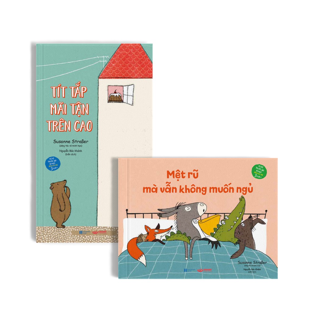 GIỚI THIỆU SÁCH Bộ truyện thuộc tủ sách đọc trước giờ đi ngủ. Với chất liệu board book, sách được bồi giấy vô cùng cứng cáp và chắc chắn, không thể xé rách, giúp các bạn nhỏ thoải mái vui chơi và khám phá cuốn sách trong thời gian dài. Combo bao gồm 2 cuốn: 1. Mệt rũ mà vẫn không muốn ngủ Mệt rũ mà vẫn không muốn ngủ – quả là một vấn đề muôn thuở khiến bố mẹ đau đầu khi phải dỗ trẻ lên giường. Trong cuốn sách tinh quái này cũng vậy, có biết bao nhiêu là nhân vật, dù đã làm đủ mọi việc và bày đủ mọi trò, vẫn chưa thể chìm vào giấc ngủ ngoan. Susanne Straber đã nắm bắt tâm lý các độc giả của mình cực nhạy bén và chuẩn xác để viết nên một cuốn sách hội tụ đầy đủ những yếu tố làm tụi trẻ thích mê: các bạn thú ngộ nghĩnh lại láu cá; phần lời đơn giản và lặp đi lặp lại; câu chuyện hài hước với phần kết chứa đựng một bất ngờ cực kỳ thú vị và đáng mong chờ. Bằng sự hóm hỉnh duyên dáng của mình, cô Susanne đã biến sự lặp lại tưởng chừng như buồn tẻ, những hành vi ngốc nghếch của các nhân vật trở nên đầy thi vị với những độc giả nhỏ tuổi. Các bạn nhỏ sẽ dễ dàng bắt gặp hình ảnh quen thuộc của bản thân trước giờ đi ngủ, nào là chạy đi chơi, nào là lục tìm thứ này thứ kia mà không chịu nằm yên; để rồi ngạc nhiên và thích thú. Cuốn sách nhẹ nhàng và êm ái giúp con đi vào giấc ngủ dễ dàng hơn. Một cuốn sách tuyệt vời về giờ đi ngủ dành đọc trong giờ đi ngủ, cho cả nhà những giờ khắc vui vẻ bên nhau. THÔNG TIN SÁCH – Công ty phát hành: Công ty Cổ phần thương mại và Xuất nhập khẩu Ngọc Ánh – Việt Nam – Nhà phát hành: Crabit Kidbooks – Nhà xuất bản: NXB Hà Nội – Tác giả: Susanne Straber – Chất liệu: Board Book – Loại bìa: Bìa cứng – Số trang: 22 trang – Ngày xuất bản: 29/5/2020 2. Tít tắp mãi tận trên cao Một chiếc bánh ngon lành được đặt trên bậu cửa sổ cao thật cao, và ở dưới là một chú Gấu đang đói mẻo mèo meo. Ôi, giá mà Gấu với được tới chiếc bánh! Kế đó là những người bạn tốt bụng quyết tâm hợp sức với nhau với hy vọng lấy được chiếc bánh xuống. Nghệ thuật sử dụng một cảnh duy nhất xuyên suốt cùng những màu lặng, hình vẽ bao bởi những đường viền đen khiến cho minh họa của cuốn sách thật gọn gàng, mang đến một câu chuyện đầy dễ thương về tình đoàn kết. Một lựa chọn hoàn hảo cho những em bé đang ở lứa tuổi chập chững biết đi bởi tranh vẽ giản dị nhưng hấp dẫn, màu sắc tươi sáng thu hút thị giác của trẻ. Nét vẽ đậm tính thủ công cùng cách xử lý hình ảnh mộc mạc cũ kỹ nhưng đầy tính thơ tạo ra cảm giác mơ màng rất riêng, ủ ấm cho những tâm hồn ngây ngô bé bỏng. Phần lời cũng đặc sắc không kém, với những từ láy đặc tả vui nhộn, bố mẹ hãy cùng con đọc nhấn nhá và to váng lên nhé, hiệu quả sẽ cực tuyệt vời luôn. THÔNG TIN SÁCH – Công ty phát hành: Công ty Cổ phần thương mại và Xuất nhập khẩu Ngọc Ánh – Việt Nam – Nhà phát hành: Crabit Kidbooks – Nhà xuất bản: NXB Hà Nội – Tác giả: Susanne Straber – Chất liệu: Board Book – Loại bìa: Bìa cứng – Số trang: 22 trang – Ngày xuất bản: 29/5/2020 #crabit #crabitkidbooks #nhasachonline #book #books #sách #sáchhay #sáchthiếunhi #sach #sachhay #sachthieunhi #sachtreem #sachchobe #sachchocon #sachtruyen #truyen #truyenhay #truyenthieunhi