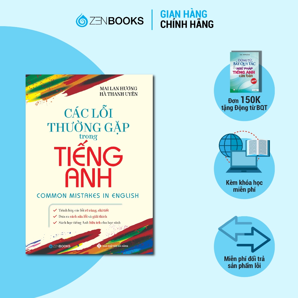 Tác giả: Mai Lan Hương – Hà Thanh Uyên Nhà xuất bản : Đà Nẵng Năm xuất bản : 2021 Nhà phát hành : Zenbooks Số trang: 235 Cuốn sách nhằm giúp các bạn nhận biết và khắc phục lỗi mà người học tiếng Anh hay gặp. Nội dung được trình bày đồng nhất, lỗi thường gặp được đề cập – trình bày và sửa lỗi sai bằng câu đúng ở phía dưới. Sau đó là lời giảng giải thích hoặc cách dùng cụ thể trong một số trường hợp cần thiết.