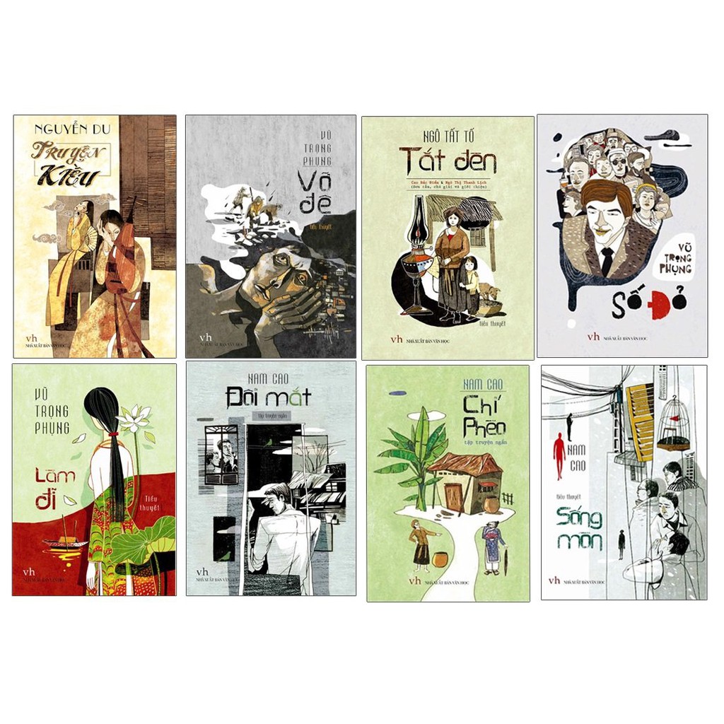 A. Chí Phèo Chí Phèo – tập truyện ngắn tái hiện bức tranh chân thực nông thôn Việt Nam trước 1945, nghèo đói, xơ xác trên con đường phá sản, bần cùng, hết sức thê thảm, người nông dân bị đẩy vào con đường tha hóa, lưu manh hóa. Nam Cao không hề bôi nhọ người nông dân, trái lại nhà văn đi sâu vào nội tâm nhân vật để khẳng định nhân phẩm và bản chất lương thiện ngay cả khi bị vùi dập, cướp mất cà nhân hình, nhân tính của người nông dân, đồng thời kết án đanh thép cái xã hội tàn bạo đó trước 1945. Những sáng tác của Nam Cao ngoài giá trị hiện thực sâu sắc, các tác phẩm đi sâu vào nội tâm nhân vật, để lại những cảm xúc sâu lắng trong lòng người đọc. THÔNG TIN CHI TIẾT Công ty phát hành Minh Long Tác giả Nam Cao Ngày xuất bản 04-2016 Kích thước 13 x 18 cm Nhà xuất bản Nhà Xuất Bản Văn Học Loại bìa Bìa mềm Số trang 196 B.Số Đỏ Sách: Số Đỏ – Vũ Trọng Phụng Mã sản phẩm: 8936067595888 Tác giả : Vũ Trọng Phụng Nhà Xuất Bản: Văn Học Kích thước : 13 x 18 cm Năm xuất bản : 2016 Số trang : 254 Khối lượng : 200 grams Bìa : bìa mề Tác phẩm chính: Không một tiếng vang (kịch, 1931), Cạm bẫy người (phóng sự, 1933), Dứt tình (tiểu thuyết, 1934), Kỹ nghệ lấy Tây (phóng sự, 1934), Giông tố (tiểu thuyết, 1936), Cơm thầy cơm cô (phóng sự, 1936), Vỡ đê (tiểu thuyết, 1936), Số đỏ (tiểu thuyết, 1936), Làm đĩ (tiểu thuyết, 1936), Lấy nhau vì tình (tiểu thuyết, 1937), Lục sì (phóng sự, 1937), Trúng số độc đắc (tiểu thuyết, 1938),… và nhiều truyện ngắn. C.Tắt Đèn “Tắt đèn là một cuốn xã hội tiểu thuyết tả cảnh đau khổ của dân quê, của một người đàn bà nhà quê An Nam suốt đời sống trong sự nghèo đói và sự ức hiếp của bọn cường hào và người có thế lực mà lúc nào cũng vẫn hết lòng vì chồng, vì con”. Mã sản phẩm: 8936067596472 Tác giả : Ngô Tất Tố Nhà xuất bản: Văn Học Kích thước : 13 x 18 cm Năm xuất bản : 2016Mã sản phẩm: 8936067596472 Tác giả : Ngô Tất Tố Nhà xuất bản: Văn Học Kích thước : 13 x 18 cm Năm xuất bản : 2016 Số trang : 224 Khối lượng : 180 grams Bìa : bìa D. Vỡ Đê Vũ Trọng Phụng (1912-1939) là một nhà văn, nhà báo nổi tiếng của Việt Nam vào đầu thế kỷ 20. Tuy thời gian cầm bút rất ngắn ngủi, với tác phẩm đầu tiên là truyện ngắn Chống nạng lên đường đăng trên Ngọ báo vào năm 1930, ông đã để lại một kho tác phẩm đáng kinh ngạc: hơn 30 truyện ngắn, 9 tập tiểu thuyết, 9 tập phóng sự, 7 vở kịch, cùng 1 bản dịch vở kịch từ tiếng Pháp, một số bài viết phê bình, tranh luận văn học và hàng trăm bài báo viết về các vấn đề chính trị, xã hội Công ty phát hành Minh Long Tác giả Vũ Trọng Phụng Ngày xuất bản 01-2017 Kích thước 13 x 18 cm Nhà xuất bản Nhà Xuất Bản Văn Học Loại bìa Bìa mềm Số trang 276 G.Sống Mòn “Cuối năm 1944, Nam Cao viết xong Sống mòn. Tập tiểu thuyết ấy quăng đi, ném lại, không lọt qua được lưới kiểm duyệt để xuất bản, tuy rằng soi từng chữ không có chỗ nào bắt bẻ được. Sống mòn tả cuộc sống thiểu não, quẩn quanh, nhỏ nhen của mấy người trí thức tiểu tư sản nghèo, một cuộc sống mù xám cứ “mốc lên, rỉ đi, mòn ra, mục ra”, không có lối thoát. Rộng hơn là vận mệnh mấy con người ấy, ta thấy đặt ra một cách ám ảnh vấn đề vận mệnh chung của cả một xã hội chua xót, đau đớn, buồn thảm, tủi nhục, trong đó, đời sống không còn ý nghĩa, quay về phía nào cũng thấy dựng lên những bức tường bế tắc.” THÔNG TIN CHI TIẾT Công ty phát hành Minh Long Tác giả Nam Cao Ngày xuất bản 07-2016 Kích thước 13 x 18 cm Nhà xuất bản Nhà Xuất Bản Văn Học Loại bìa Bìa mềm Số trang 304 H. Đôi Mắt Cái cơ nghiệp một con người giàu ở nhà quê có bao nhiêu! Một mình thằng con nuôi phá đã đi đứt ngay một nửa. Các bạn bè hắn phá một phần của cái nửa kia. Còn phần trót thì những kẻ thù của hắn phá nốt khi hắn chết. Bà quản Thích mới kịp nghĩ ra rằng: có một đứa con hung ác là một cái họa; nhưng mất một đứa con hung ác lại là một cái họa lớn hơn. Cũng may, khi mất hết của cải rồi thì bà được yên thân; ở chốn thôn quê đầy bất công và nhũng nhiễu, một người đàn bà góa chỉ yên thân khi đã thật già và thật nghèo. I. Làm Đĩ Làm đĩ là một thiên tả chân tiểu thuyết mục đích là hô hào nhà đạo đức và bậc làm cha mẹ chăm lo đến hạnh phúc của con cái và phải để ý đến cái sự mà những thành kiến hủ bại vẫn coi là điều bẩn thỉu, tức cái sự dâm.” THÔNG TIN CHI TIẾT Công ty phát hành Minh Long Tác giả Vũ Trọng Phụng Ngày xuất bản 07-2016 Kích thước 13 x 18 cm Nhà xuất bản Nhà Xuất Bản Văn Học Loại bìa Bìa mềm Số trang 228 C. Truyện Kiều Nguyễn Du (1766 – 1820) là một nhà thơ, nhà văn hóa lớn, được người Việt kính trọng tôn xưng là “Đại thi hào dân tộc”. Ông là nhà thơ có học vấn uyên bác, đặc biệt có tài làm thơ chữ Nôm, mà đỉnh cao là truyện Kiều. Trong thơ Ng