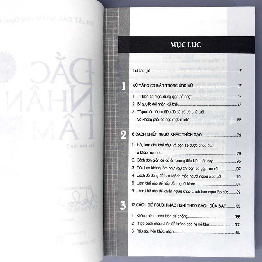 Đắc nhân tâm – Thuật đắc nhân tâm dụng nhân Đắc Nhân Tâm – Thuật Đắc Nhân Tâm Dụng Nhân của Dale Carnegie là quyển sách nổi tiếng nhất, bán chạy nhất và có tầm ảnh hưởng nhất của mọi thời đại. Tác phẩm đã được chuyển ngữ sang hầu hết các thứ tiếng trên thế giới và có mặt ở hàng trăm quốc gia. Đây là quyển sách duy nhất về thể loại self-help liên tục đứng đầu danh mục sách bán chạy nhất (best-selling Books) do báo The New York Times bình chọn suốt 10 năm liền. Tác phẩm có sức lan tỏa vô cùng rộng lớn – dù bạn đi đến bất cứ đâu, bất kỳ quốc gia nào cũng đều có thể nhìn thấy. Đắc Nhân Tâm là một tác phẩm nghệ thuật cao nhất về con người và chính là ý nghĩa sâu sắc nhất đúc kết từ những nguyên tắc vàng của Dale Carnegie. Tác phẩm được đánh giá là quyển sách đầu tiên và hay nhất, có ảnh hưởng làm thay đổi cuộc đời của hàng triệu người trên thế giới. ——— Công ty phát hành Huy Hoàng Bookstore Tác giả Dale Carnegie Ngày xuất bản 06-2017 Kích thước 13.5 x 20.5 cm Nhà xuất bản Nhà Xuất Bản Dân Trí Loại bìa Bìa mềm Số trang 288 ——– #sách, #tuổitrẻđánggiábaonhiêu, #hànhtrìnhvềphươngđông, #vãntình, #đừnglựachọnannhànkhicòntrẻ, #tôiquyếtđịnhsốngchochínhtoi, #sáchhay, #nhàsáchonline