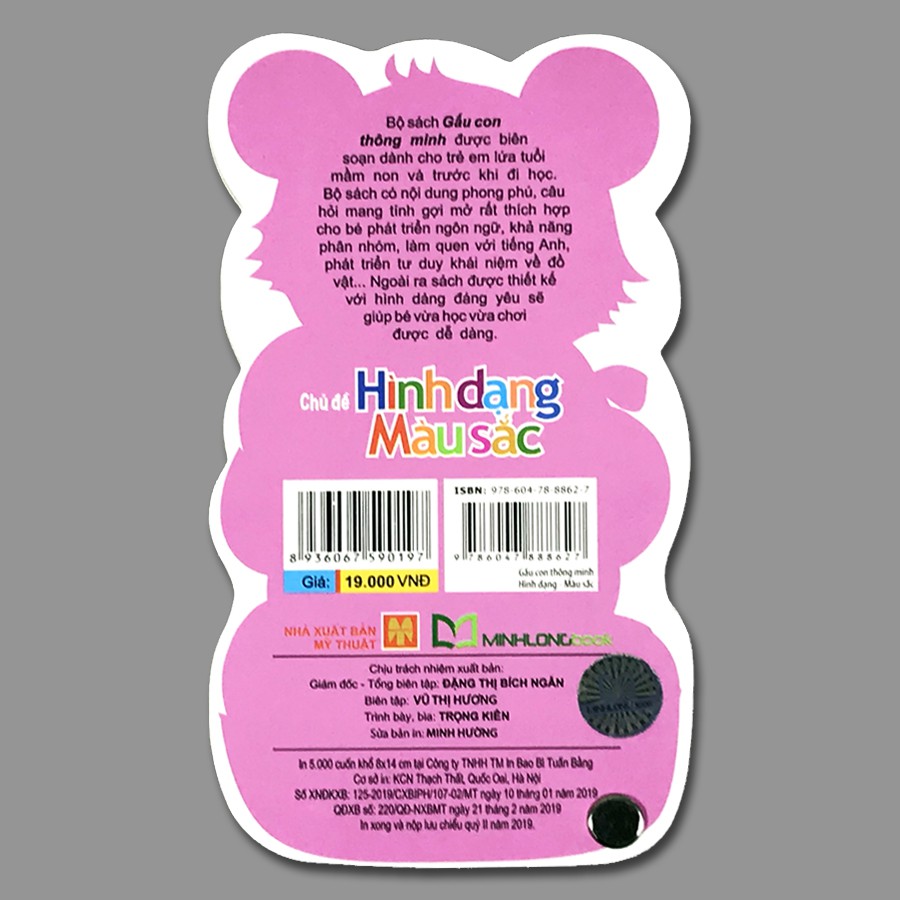 Gấu Con Thông Minh – Chủ Đề: Hình Dạng Màu Sắc Bộ sách GẤU CON THÔNG MINH dành cho lứa tuổi Mẫu giáo được biên soạn dành cho trẻ em lứa tuổi Mầm Non và trước khi Bé vào Lớp 1. Bộ sách có nội dung phong phú, câu hỏi mang tính gợi mở với số lượng hình ảnh minh họa phong phú rất thích hợp cho bé, cũng như phát triển khả toàn diện trí tuệ cho trẻ; Bé được khám phá thế giới xung quanh với nhiều chủ đề và đặc biệt qua các bé được làm quen với tiếng Anh qua hình ảnh cùng các gợi ý chú giải chi tiết… giúp các bé hứng thú khám phá học hỏi. Cuốn sách như một cuốn Từ điển Bách khoa bỏ túi thu nhỏ mang lại cho các bé một lượng tri thức phong phú, đa dạng. Ngoài ra sách được thiết kế với hình dáng gấu con đáng yêu giúp bé vừa học vừa chơi. Nào các bé dưới sự giúp đỡ của cô, cha mẹ và các anh chị lớn… các bé cùng tham gia khám phá những điều thú vị, mới mẻ và vô cùng khoa học qua từ chủ đề mà GẤU CON THÔNG MINH mang lại nhé! Cha mẹ và các bé tìm đọc trọn bộ 12 cuốn: 1. Gấu con thông minh – Toán 1-2-3 2. Gấu con thông minh – Hình dạng, mầu sắc 3. Gấu con thông minh – Giao thông 4. Gấu con thông minh – Động vật 5. Gấu con thông minh – Rau củ, quả 6. Gấu con thông minh – Bảng chữ cái 7. Gấu con thông minh – Gia Đình và Bản Thân 8. Gấu con thông minh – Chim Và côn Trùng 9. Gấu con thông minh – Trang phục và Đồ dùng học tập 10. Gấu con thông minh – Sự đối lập và Vật dụng gia đình 11. Gấu con thông minh – Hoa và Đồ chơi 12. Gấu con thông minh – Âm nhạc và Thể thao ==== Công ty phát hành Minh Long Nhà xuất bản Nhà Xuất Bản Mỹ Thuật Tác giả Nhiều tác giả Loại bìa Bìa cứng Số trang 48 Ngày xuất bản 02-2019 Kích thước 8 x 14 cm ~~~~~~~ #ehon, #flashcard, #sách-truyệnthiếunhi, #btscomic, #thẻhọcthôngminhchobé, #thẻhọcthôngminh, , #ăndặm, #bộthẻhọcthôngminh, #truyệncổtích, #ăndặmkiểunhật, #ăndặmkhôngphảilàcuộcchiến, #đểconđượcốm, , #sáchlậtmở, #sáchăndặm, #truyệntranh, #10vạncâuhỏivìsao, #báchkhoatoànthưchobé, #sáchchiếubóng, #flashcardstiếnganh, #glenndoman, #sáchnuôiconkhôngphảicuộcchiến, #flashcard, #thẻhọc, #combo, #sáchhay, #nhàsáchonline