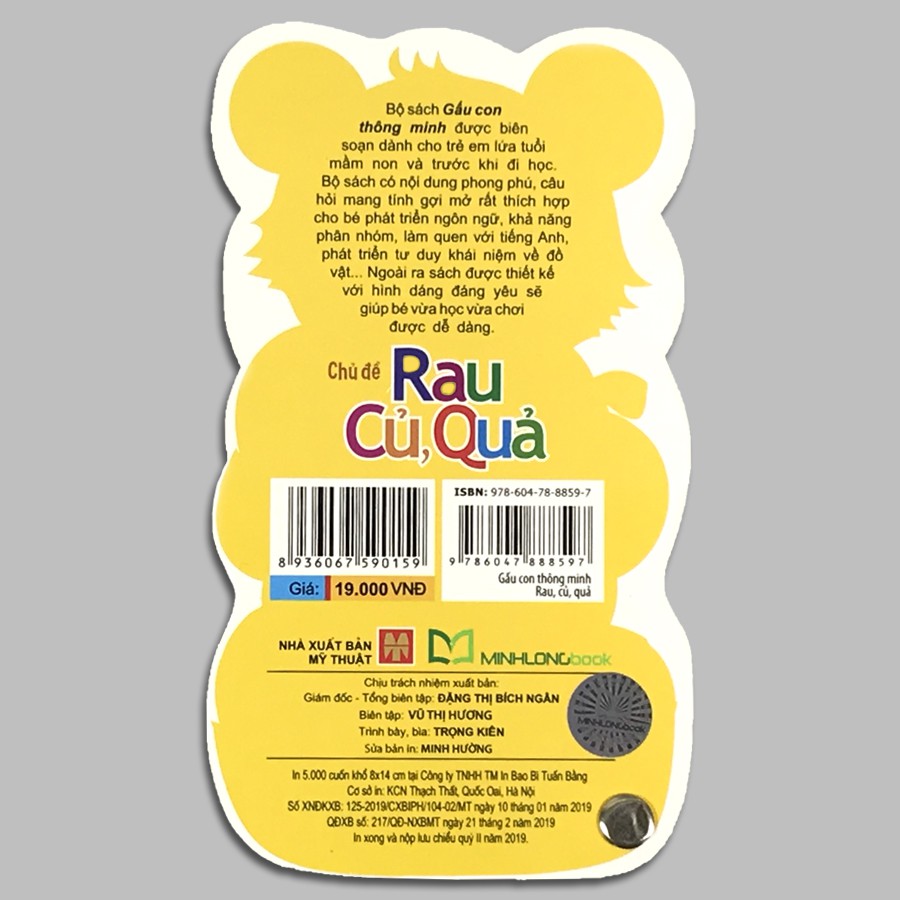 Gấu Con Thông Minh – Rau, Củ, Quả Bộ sách GẤU CON THÔNG MINH dành cho lứa tuổi Mẫu giáo được biên soạn dành cho trẻ em lứa tuổi Mầm Non và trước khi Bé vào Lớp 1. Bộ sách có nội dung phong phú, câu hỏi mang tính gợi mở với số lượng hình ảnh minh họa phong phú rất thích hợp cho bé, cũng như phát triển khả toàn diện trí tuệ cho trẻ; Bé được khám phá thế giới xung quanh với nhiều chủ đề và đặc biệt qua các bé được làm quen với tiếng Anh qua hình ảnh cùng các gợi ý chú giải chi tiết… giúp các bé hứng thú khám phá học hỏi. Cuốn sách như một cuốn Từ điển Bách khoa bỏ túi thu nhỏ mang lại cho các bé một lượng tri thức phong phú, đa dạng. Ngoài ra sách được thiết kế với hình dáng gấu con đáng yêu giúp bé vừa học vừa chơi. Nào các bé dưới sự giúp đỡ của cô, cha mẹ và các anh chị lớn… các bé cùng tham gia khám phá những điều thú vị, mới mẻ và vô cùng khoa học qua từ chủ đề mà GẤU CON THÔNG MINH mang lại nhé! Cha mẹ và các bé tìm đọc trọn bộ 12 cuốn: 1. Gấu con thông minh – Toán 1-2-3 2. Gấu con thông minh – Hình dạng, mầu sắc 3. Gấu con thông minh – Giao thông 4. Gấu con thông minh – Động vật 5. Gấu con thông minh – Rau củ, quả 6. Gấu con thông minh – Bảng chữ cái 7. Gấu con thông minh – Gia Đình và Bản Thân 8. Gấu con thông minh – Chim Và côn Trùng 9. Gấu con thông minh – Trang phục và Đồ dùng học tập 10. Gấu con thông minh – Sự đối lập và Vật dụng gia đình 11. Gấu con thông minh – Hoa và Đồ chơi 12. Gấu con thông minh – Âm nhạc và Thể thao Công ty phát hành Minh Long Tác giả Nhiều tác giả Ngày xuất bản 02-2019 Kích thước 8 x 14 cm Nhà xuất bản Nhà Xuất Bản Mỹ Thuật Loại bìa Bìa cứng Số trang 48 #ehon, #flashcard, #sách-truyệnthiếunhi, #btscomic, #thẻhọcthôngminhchobé, #thẻhọcthôngminh, , #ăndặm, #bộthẻhọcthôngminh, #truyệncổtích, #ăndặmkiểunhật, #ăndặmkhôngphảilàcuộcchiến, #đểconđượcốm, , #sáchlậtmở, #sáchăndặm, #truyệntranh, #10vạncâuhỏivìsao, #báchkhoatoànthưchobé, #sáchchiếubóng, #flashcardstiếnganh, #glenndoman, #sáchnuôiconkhôngphảicuộcchiến, #flashcard, #thẻhọc, #combo, #sáchhay, #nhàsáchonline