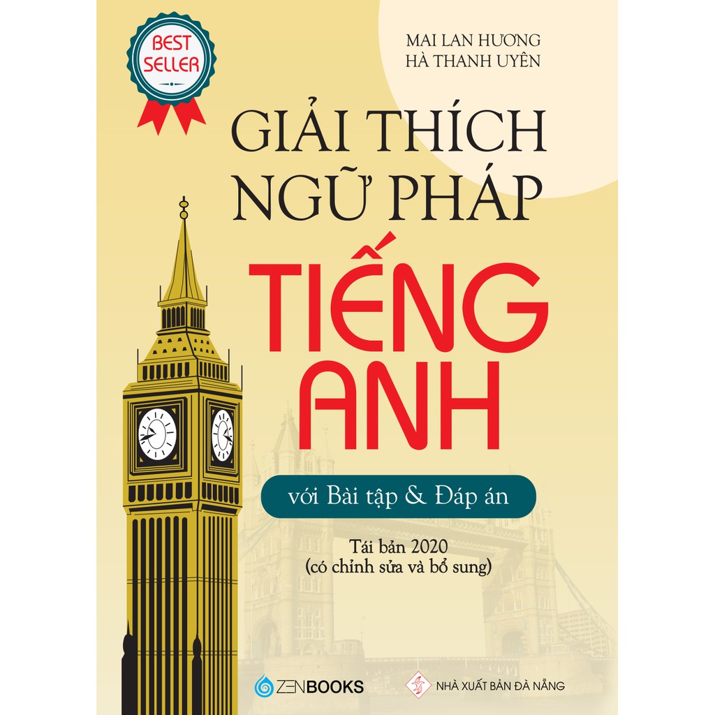 Giải Thích Ngữ Pháp Tiếng Anh : Công ty phát hành: Zenbooks Tác giả: Mai Lan Hương, Hà Thanh Uyên Nhà xuất bản: Nhà Xuất Bản Đà Nẵng Năm xuất bản: 2020 Số trang: 560 Giới thiệu sách: GIẢI THÍCH NGỮ PHÁP TIẾNG ANH, tác giả Mai Lan Hương – Hà Thanh Uyên, là cuốn sách ngữ pháp đã được phát hành và tái bản rất nhiều lần trong suốt những năm vừa qua. Trong lần tái bản GIẢI THÍCH NGỮ PHÁP TIẾNG ANH năm 2020 này, nhằm nâng cao chất lượng sách và giúp người học trau dồi, củng cố và nâng cao kiến thức ngữ pháp tiếng Anh, chúng tôi chỉnh sửa, bổ sung và cập nhật một số kiến thức ngữ pháp mới. Ấn bản mới GIẢI THÍCH NGỮ PHÁP TIẾNG ANH gồm 5 chương, hệ thống hóa toàn diện kiến thức ngữ pháp tiếng Anh từ cơ bản đến nâng cao: • Chương 1: Từ Loại (Parts of Speech) • Chương 2: Thì và Sự Phối Hợp Thì (Tenses and Sequence of Tenses) • Chương 3: Mệnh Đề (Clauses) • Chương 4: Câu (Sentences) • Chương 5: Từ Vựng Học (Word Study) Các chủ điểm ngữ pháp trong từng chương được trình bày rõ ràng, chi tiết, giải thích cặn kẽ các cách dùng và quy luật mà người học cần nắm vững. Sau mỗi chủ điểm ngữ pháp là phần bài tập đa dạng nhằm giúp người học củng cố phần lý thuyết. Trân trọng hợp tác và phục vụ