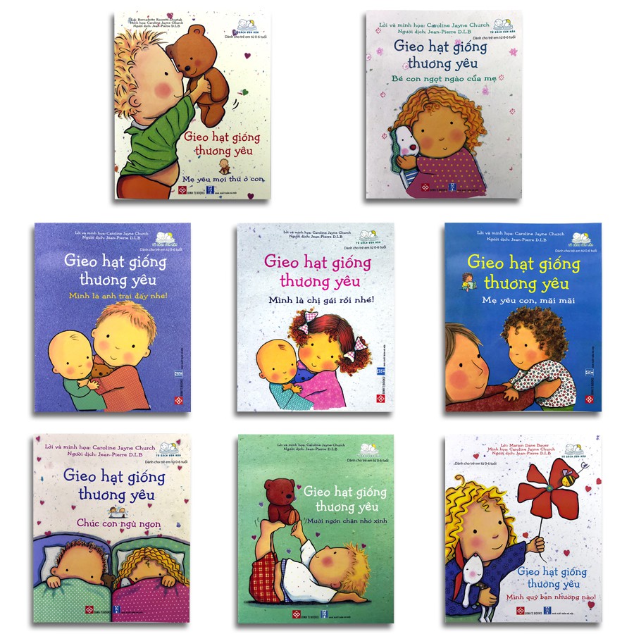 Gieo Hạt Giống Thương Yêu ( lẻ tùy chọn) — Gieo hạt giống thương yêu (8 tập) là một bộ sách rất dễ thương và thú vị với nội dung viết về tình cảm gia đình và bạn bè vô cùng gần gũi và ấm áp, ngôn ngữ kể chuyện nhẹ nhàng và tình cảm, hình ảnh ngộ nghĩnh và đáng yê chắc chắn sẽ mang lại những giây phút vui vẻ cùng nhiều khoảnh khắc tuyệt vời cho bố mẹ và các em bé. Bộ sách siêu ấm áp và ngọt ngào này giống như món quà tặng quý giá, sẽ giúp nuôi dưỡng và vun đắp những “hạt giống thương yêu” giữa bố mẹ, anh chị em, bạn bè của các em bé trong chính ngôi nhà thân yêu của mình. ———- Công ty phát hành Đinh Tị Tác giả Caroline Jayne Church Ngày xuất bản 02-2020 Kích thước 17 x 20.5 cm Nhà xuất bản Nhà Xuất Bản Hà Nội Loại bìa Bìa mềm Số trang 24 trang/1q *8