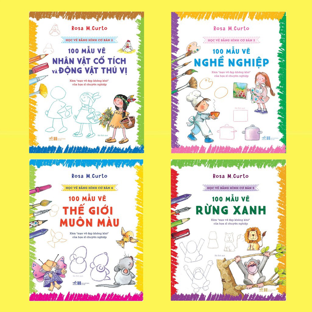 Công ty phát hành Nhã Nam Tác giả: Rosa M. Curto Dịch giả: Bảo Bình Nhà xuất bản: Hà Nội Số trang: 96 Kích thước: 22×26.5 cm Ngày phát hành: 07-2020 HỌC VẼ BẰNG HÌNH CƠ BẢN Bộ sách dạy vẽ của họa sĩ chuyên nghiệp Tuổi 5+ Hướng dẫn chi tiết từng bước Kèm kiến thức hội họa cơ bản Món quà tuyệt vời cho mọi họa sĩ nhí! Bộ sách gồm 4 cuốn: – 100 mẫu vẽ rừng xanh – 100 mẫu vẽ thế giới muôn màu – 100 mẫu vẽ nghề nghiệp – 100 mẫu vẽ nhân vật cổ tích và động vật thú vị Như tất cả các môn nghệ thuật khác, vẽ là một cách biểu đạt và giải tỏa cảm xúc cực kỳ hiệu quả. Học vẽ giúp trẻ em mở rộng tâm trí để phát huy khả năng sáng tạo và khám phá những điều mới mẻ. Đây là bộ sách vô cùng hữu ích được họa sĩ Rosa M. Curto minh họa và chỉ dẫn. Mỗi cuốn gồm 100 hình mẫu các nhân vật cổ tích, động vật thú vị, đồ vật quen thuộc, nghề nghiệp quanh em, thiên nhiên muôn màu,… Bộ sách dạy em “chơi” cùng các hình khối, màu sắc; trang bị cho em những kiến thức, kỹ năng hội họa cơ bản nhưng cực kỳ hữu ích và hướng dẫn em vẽ, tô màu từng bước chi tiết. Họa sĩ Rosa cũng đan cài nhiều “mẹo vẽ đẹp không khó” để hành trình học vẽ của em thêm thuận lợi và thú vị hơn. 4 cuốn sách với 4 chủ đề khác nhau, mỗi cuốn chứa những kiến thức hội họa khác nhau. 100 MẪU VẼ NHÂN VẬT CỔ TÍCH VÀ ĐỘNG VẬT THÚ VỊ Tiên hoa đỏm dáng, anh hề vui nhộn, kỳ lân lộng lẫy, tiểu yêu tinh nghịch, cá heo hiền hòa, gà trống oai vệ… 100 mẫu vẽ nhân vật cổ tích và động vật thú vị sẽ từng bước hiện lên thật sống động dưới nét chì của em. Sách cũng dạy em cách thể hiện chuyển động, các kiểu bong bóng hội thoại, ký hiệu và biểu tượng khi Vẽ Truyện Tranh. Bên cạnh đó là kiến thức về Mảng Sáng Và Mảng Tối, Tỉ Lệ Trong Hội Họa,… Kèm một số thí nghiệm nhỏ để em thêm hiểu bài. 100 MẪU VẼ NGHỀ NGHIỆP Cô trông trẻ tháo vát, đầu bếp tài ba, bác sĩ tận tụy, nhạc trưởng tài năng, thợ làm bánh khéo léo, họa sĩ tài hoa… thế giới muôn nghề sẽ hiện lên chân thật và thân thương dưới nét chì của em. Sách giới thiệu Bộ Sưu Tập Họa Cụ dành cho họa sĩ nhí và hướng dẫn em vẽ bảng màu họa sĩ cùng một số loại cọ vẽ đơn giản. 100 MẪU VẼ THẾ GIỚI MUÔN MÀU Với cuốn sách này, em được học vẽ muôn hoa khoe sắc, côn trùng nhỏ bé, chuột nhí nhảnh, sóc nhanh nhẹn, cô tiên duyên dáng, chú lùn tốt bụng,… Bên cạnh đó, sách dạy em một số kiến thức hữu ích về Màu Sắc (màu sơ cấp, màu thứ cấp, màu bổ túc, màu nóng, màu lạnh, màu sáng, màu tối). Sách hướng dẫn em cách quan sát, chạm và cảm nhận vật trước khi đặt bút vẽ. 100 MẪU VẼ RỪNG XANH Cuốn sách này dạy em vẽ muôn loài trong rừng xanh bí ẩn như cá sấu dữ tợn, sư tử oai vệ, báo đen dũng mãnh, khỉ con hiếu động, những cô bé, cậu bé thổ dân và nhà thám hiểm tài ba,… Sách giới thiệu các loại bút chì và giấy vẽ khác nhau. Mỗi loại cho em một trải nghiệm thú vị riêng. Ngoài bút chì, em còn có thể vẽ bằng sáp màu, màu nước, mực, hay các chất liệu như sơn móng tay, nước ép cà rốt, cà phê,… Trong cuốn sách này, em cũng được học về Sắc Điệu, Khoảng Cách và Hình Phản Chiếu trong hội họa. Kèm một trò chơi nhỏ vui vui.