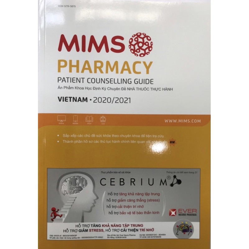 Sách Mims pharmacy Cẩm nang nhà thuốc thực hành 2021 Tác giả: Hội đồng chuyên đề nhà thuốc cập nhật hàng năm Nhà xuất bản y học Bìa mềm bóng kính Năm xuất bản: 2020/2021 Số trang: 400 trang – Kế thừa MIMS 2020, tuy nhiên MIMS 2021 lại là cuốn sách được trông chờ nhiều nhất vì nó đã có thêm nội dung” Thành phần hồ sơ thủ tục hành chính với nhà thuốc” . Trong quyển sách này, các bạn hoàn toàn có thể tra cứu cách thức làm chứng chỉ hành nghề, thủ tục mở mới nhà thuốc cũng như là thẩm định và tái thẩm định GPP. Các thông tin tra cứu thuốc và triệu chứng bệnh, điều trị được sắp xếp theo từng chủ đề, tiện tra cứu. Ngoài ra đây là quyển sách dùng để thẩm định GPP và tái thẩm định GPP tại nhà thuốc. – Cải tiến và sử dụng mục lục theo tên biệt dược & hoạt chất gồm số trang tham chiếu các biệt dược, hoạt chất được giới thiệu trong MIMS PHARMACY, ngoài ra còn liệt kê các sản phẩm, hiện có trong ấn phẩm. – MIMS PHARMACY sẽ tiếp tục gửi đến quý dược sĩ nguồn dữ liệu thuốc toàn diện các công cụ hỗ trợ tra cứu thuốc trong điều trị bệnh • Sắp xếp các chủ đề sức khỏe theo chuyen khoa để tiện tra cứu . • Cập nhật và bổ sung chủ đề sức khỏe mới nhất 1 – Hướng dẫn sử dụng thuốc tra cứu thuốc nhanh 2 – Các chủ đề sức khỏe thường gặp 3 – Hướng dẫn ttra cứu nhanh – mục lục sử dụng thuốc 4 – Thông tin sản phẩm và giới thiệu chi tiết trong điều trị và các tác dụng của thuốc 5 – Danh mục công ty giới thiệu sản phẩm . 6 – Mục lục tra cứu thuốc theo vần A – Z