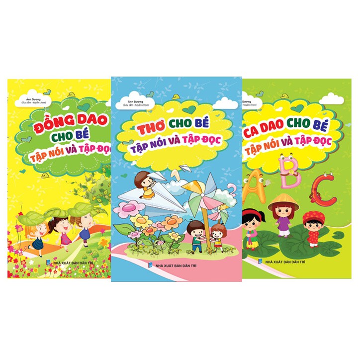 Giới thiệu sách: Combo Sách cho bé tập nói tập đọc bao gồm 3 cuốn: 1. Ca dao cho bé tập nói và tập đọc 2. Đồng dao cho bé tập nói và tập đọc 3. Thơ cho bé tập nói và tập đọc Lứa tuổi mầm non là giai đoạn các bé học hỏi thế giới xung quanh, bắt đầu hình thành nhân cách. Bởi vậy, ngoài việc vui chơi, rèn luyện thể chất, các bé cũng cần được bồi dưỡng thêm những kiến thức trong cuộc sống hằng ngày. Khi còn chưa biết chữ, chưa đến trường thì có lẽ những lời hát ru của mẹ của bà, những bài ca dao, đồng dao, những câu chuyện cổ tích là những bài học đầu tiên mà các bé được biết đến. Với mong muốn giúp các bé hình thành nên phẩm chất tốt đẹp ngay từ giai đoạn thời thơ ấu, thông qua cuốn sách, ông bà ba mẹ và những người thân xung quanh có thể cùng bé vừa đọc vừa chơi, vừa thư giãn lại vừa có thêm nhiều kiến thức bổ ích ========================= – Tác giả:: Ánh Dương – Nhà xuất bản: NXB Dân Trí – Ngày xuất bản: 2020 – Kích thước: 15 x 23 cm – Số trang: > 300 – Hình thức bìa: Bìa mềm gấp mép – Hình thức ruột: sách màu