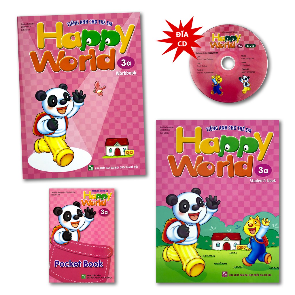 Tiếng Anh Cho Trẻ Em – Happy World – 3a (Bộ 2 quyển, 1 sổ tay, 1 đĩa DVD)
