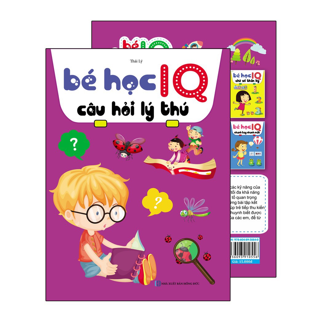 Công ty phát hành: An Phước Books Việt Nam Nhà xuất bản: NXB Hồng Đức Tác giả: Thái Lý Loại bìa: Bìa mềm Số trang: 15 Kích Thước: 17 x 24 Năm xuất bản : 10-4-2018 …………………………………. GIỚI THIỆU SÁCH Bé Học IQ – Phát Triển Trí Tuệ Cho Bé (Bộ Túi 8 Cuốn) IQ là viết tắt của “Intelligence Quotient”, thường gọi là chỉ số thông minh. Nó chỉ khả năng nhận biết các sự vật hiện tượng và vận dụng kiến thức để giải quyết vấn đề của con người. Trí tuệ bao gồm rất nhiều mặt, như: khả năng quan sát, khả năng ghi nhớ, trí tưởng tượng, năng lực tư duy, khả năng ứng biến… Bé học IQ – Câu hỏi lý thú Các câu đố bằng văn vần cùng với hình vẽ nhiều màu sắc, cuốn sách này là một lựa chọn lý tưởng để bé phát triển khả năng ngôn ngữ, khả năng suy luận. Bố mẹ cũng yên tâm rằng nếu gặp câu hỏi khó, sách có phần gợi ý giúp bố mẹ hỗ trợ bé suy nghĩ. Đảm bảo với cuốn sách này, bố mẹ cùng bé sẽ có những giờ thư giãn vui vẻ.