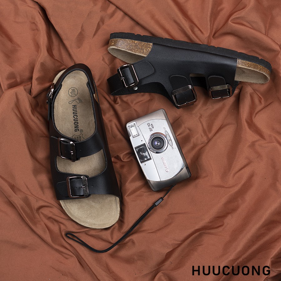 Bộ sản phẩm: Sandal 2 khóa đen đế trấu.