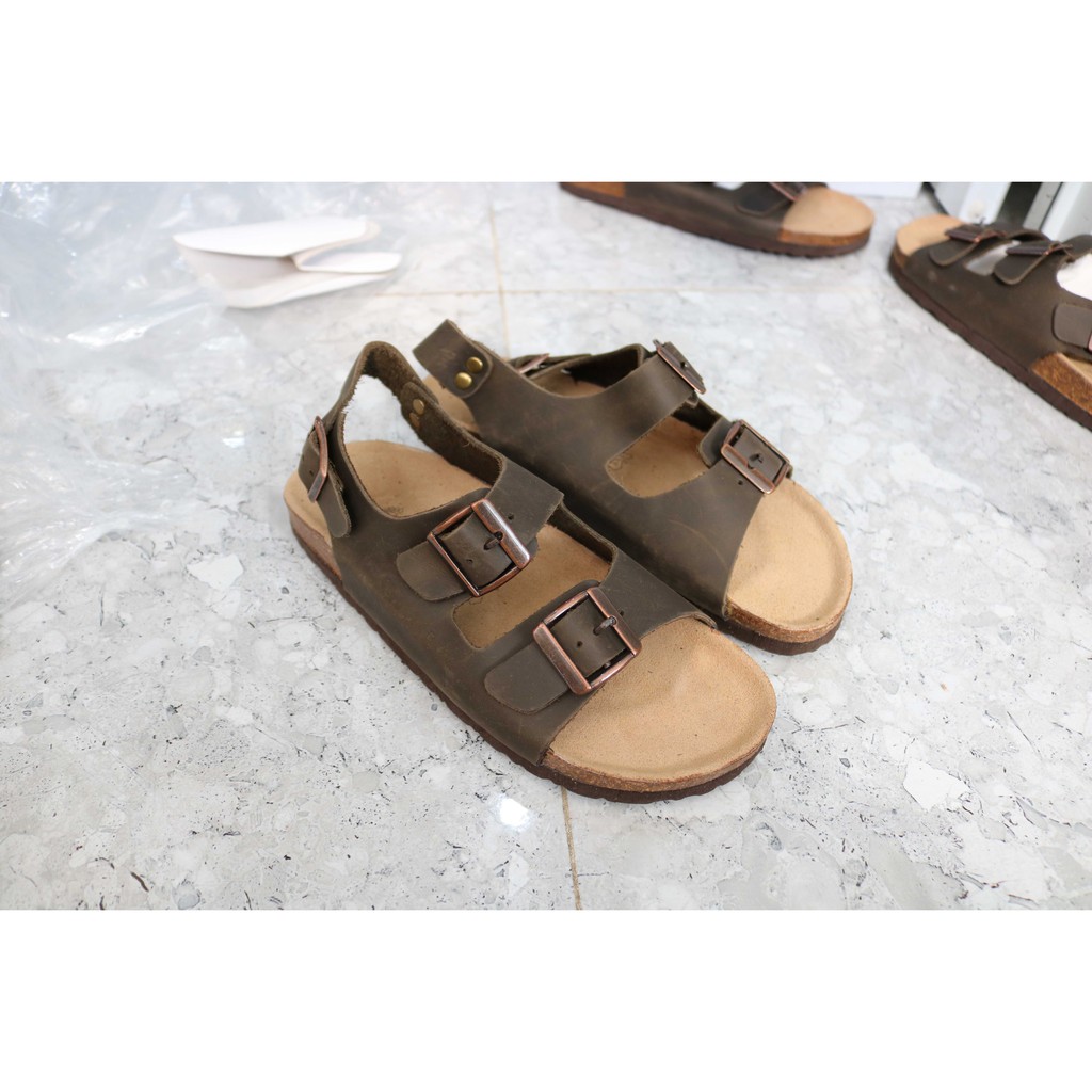 Bộ sản phẩm: Sandal HuuCuong 2 khóa da bò lục.