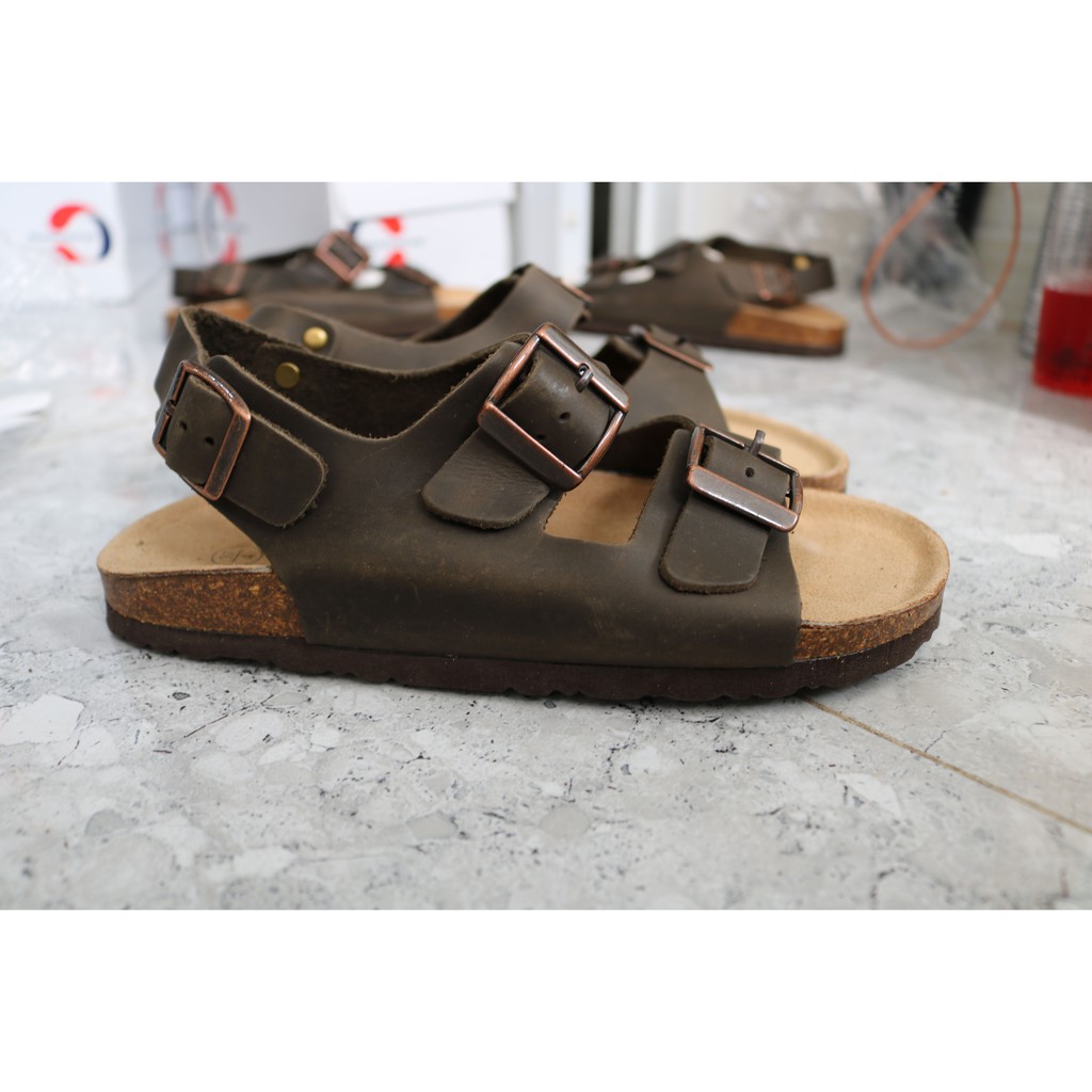 Đế: trấu ,gỗ ,mồng cưa ( đi nước và vệ sinh bình thường) Đặc điểm : Nhẹ và êm chân Kiểu dáng: 2 quai ngang, cổ điển Chất liệu: Da bò thật 100% Độ cao: 1.5cm Màu sắc: Nâu Lót chân: Da bò lộn Bảo hành 6 tháng. Hổ trợ đổi size và mẫu trong 2 ngày!