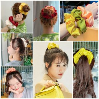 Bộ sản phẩm: Scrunchies vải trơn bóng (dây buộc tóc vải hot trent).