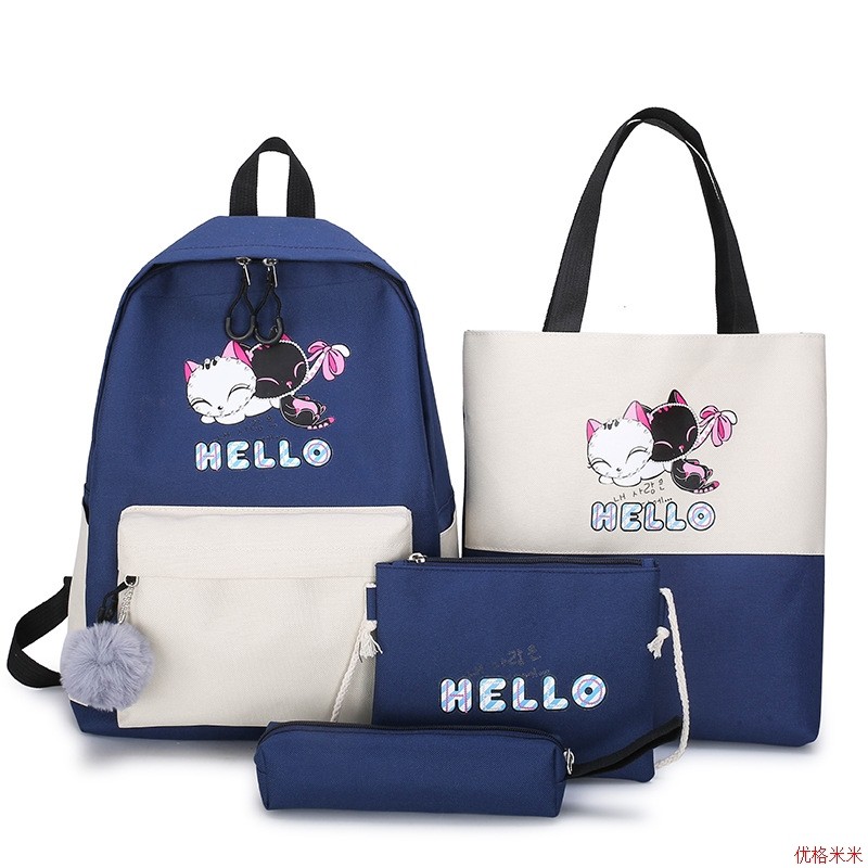 Bộ sản phẩm: Set 4 Món Balo kèm túi ví thời trang – HELLO 2 MÈO.