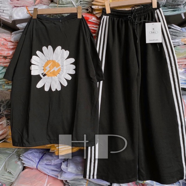 Bộ sản phẩm: Sét áo hoa cúc tia sét + quần ống rộng 3 sọc ODB768.