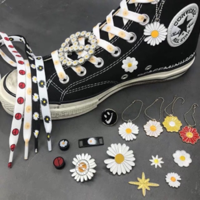 Bộ sản phẩm: Set dây giày, tag hoa cúc daisy, huy hiệu gắn giày.