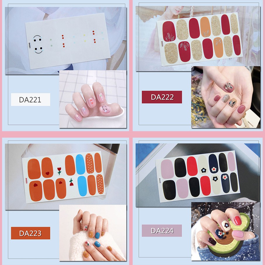 Bộ sản phẩm: Set miếng dán trang trí móng 3D nhiều màu sắc DA221-DA240.