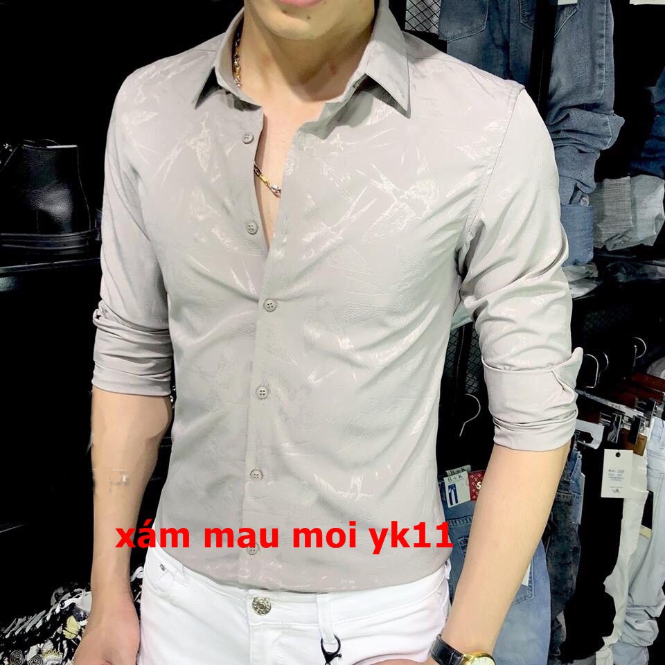 Bộ sản phẩm: Sơ Mi Nam CHẤT LỤA DÀI TAY PHONG CÁCH HỌA TIẾT XÁM CHÌM MS 04 MON SHOP.