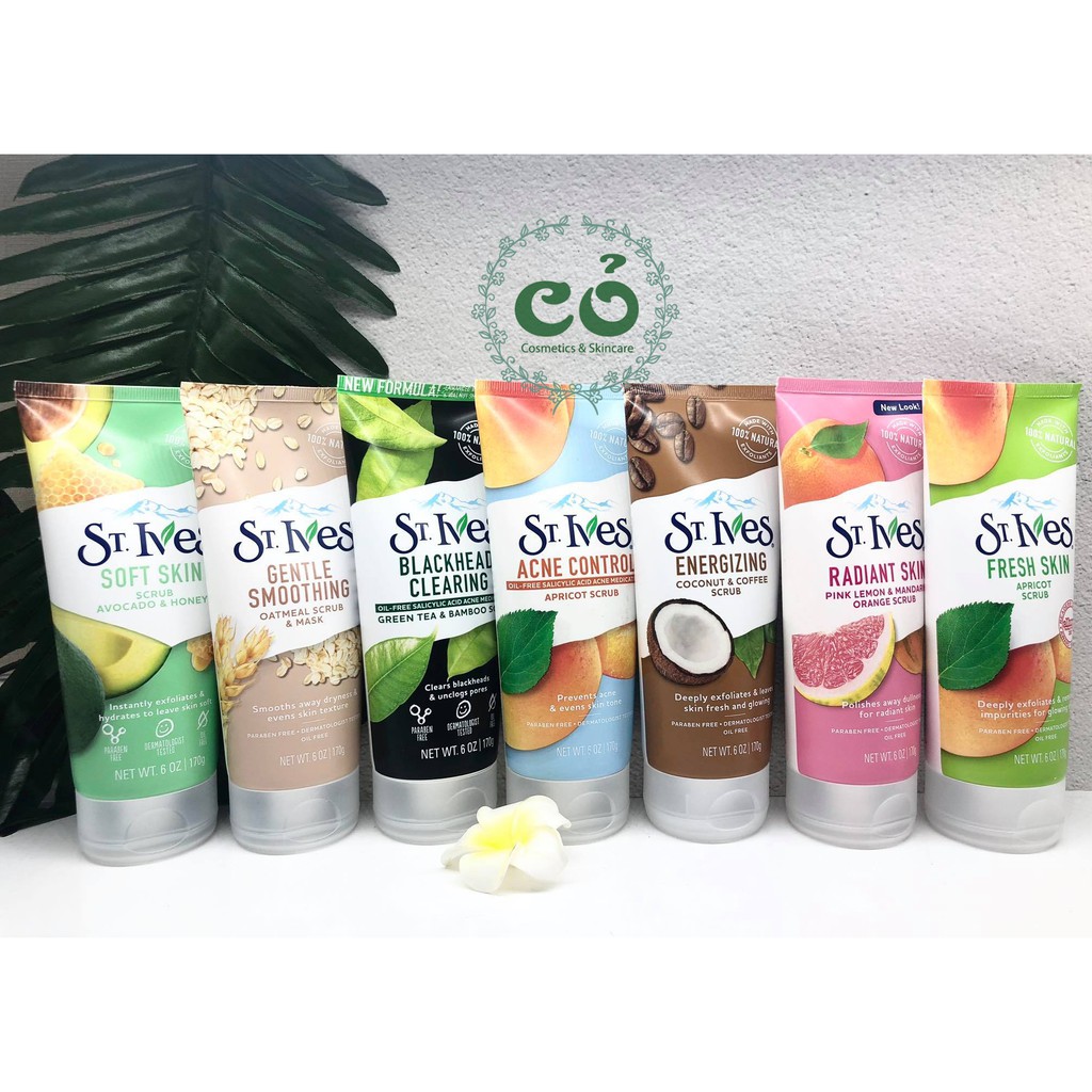 Tẩy da chết dịu nhẹ ST.IVES 170G Thương hiệu: St.ives – Mỹ Trọng lượng: 170g Tẩy tế bào chết kiêm mặt nạ Yến mạch St’ives Oatmeal Scrub & Mask + Với chiết xuất yến mạch vừa dùng để tẩy tế bào chết vừa đắp mặt nạ dưỡng da, đem lại làn da mềm mại, sáng mịn và tươi trẻ. —————– Tẩy tế bào chết trà xanh St.ives Green Tea Scrub + Nhẹ nhàng làm dịu mụn sưng đỏ, đồng thời lấy những chất bịu bẩn, chất sừng và mụn cám trên da một cách hiệu quả. + Dầu ôliu có trong ST.IVES Green Tea Scrub sẽ giúp nuôi dưỡng, giúp da trắng dần lên, đồng thời giúp da săn chắc hơn. ————— Tẩy tế bào chết làm sáng và đều màu da St Ives Even Bright Pink Lemon and Mandarin Orange Scrub + Giúp làm đều màu da và sáng da với chanh đào và quýt mật đầy vitamin C, các hạt tẩy 100% từ tự nhiên. + Chiết xuất chanh đào và quýt mật là nguồn vitamin C đánh thức các giác quan, dưỡng ẩm, cân bằng tông màu da. Silica tự nhiên giúp tẩy da chết, giúp làm mịn da. —————- Tẩy tế bào chết St.Ives Apricot Acne Control : Dành cho da dầu, da mụn, lỗ chân lông to Fresh Skin: da dầu + Giúp tẩy sạch những tế bào chết đen sạm đeo bám trên da, làm cho da xấu xí, sần sùi & thô ráp. —————- Tẩy tế bào chết dành cho da khô St Ives Coconut & Coffee Scrub + Chiết xuất từ dừa và cà phê giúp làm giảm kích ứng và mẩn đỏ do mụn gây ra, giúp da khỏe mạnh, mịn màng, trắng sáng rạng rỡ hơn và nhất là làm sạch mụn và không gây dầu. —————- Tẩy Da Chết St.Ives Avocado & Honey – Khả năng làm sạch sâu nhờ các hạt tẩy tế bào chết siêu nhỏ – Chiết xuất từ bơ và mật ong cung cấp độ ẩm tối đa cần thiết cho da – Dưỡng da mềm mịn, tăng độ đàn hồi và sáng màu hơn – Hương thơm từ bư và mật ong nhẹ nhàng, dễ chịu Cách dùng: – Làm ẩm mặt bằng nước. Cho 1 lượng vừa đủ sữa rửa mặt vô lòng bàn tay, tạo bọt, massage nhẹ trong 30 giây. – Rửa sạch với nước. Sử dụng 1 – 2 lần mỗi tuần. ——————- 70 Nguyễn Thượng Hiền, phường 5, quận 3 (9H – 21H30) Website: http://cor.vn Facebook: Cỏ Cosmetics & Skincare Hotline: 0965528998 – 0929398899 ——————- ♥️ Cỏ Cosmetics & Skincare Cam kết mỹ phẩm chính hãng 100% Luôn có giá tốt nhất