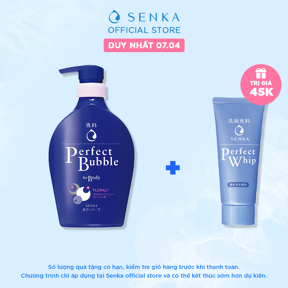 Bộ sản phẩm Sữa tắm dưỡng ẩm hương hoa tươi mát Senka Perfect Bubble for Body Floral Plus 500ml, Thương hiệu Senka Xuất xứ thương hiệu Nhật Bản Xuất xứ Nhật Bản Hạn sử dụng 3 năm kể từ ngày sản xuất SKU 3746720381957.