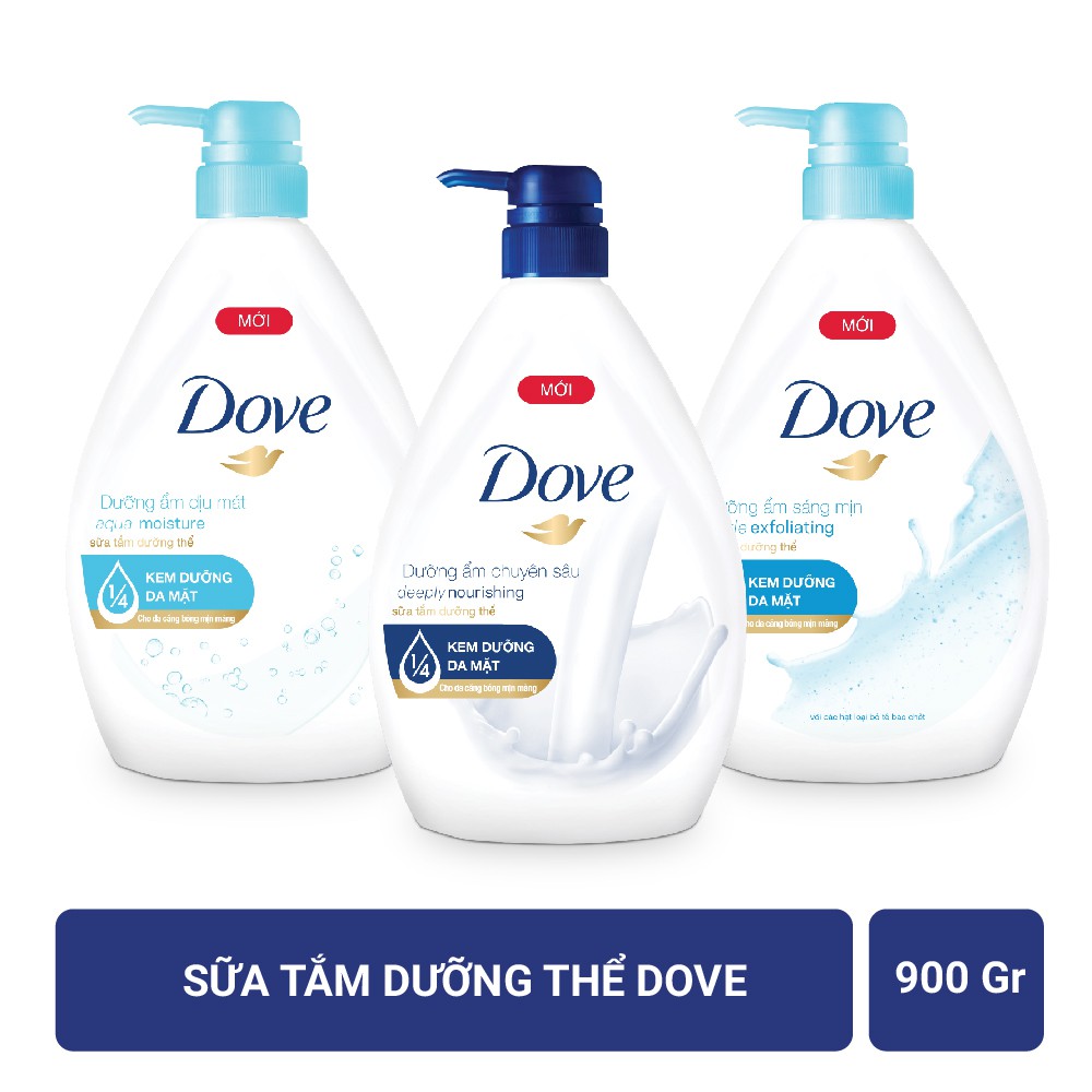 Điểm khác biệt của Dove là gì? Chỉ sữa tắm Dove có chứa tinh chất dưỡng ẩm NutriumMoisture. Hỗn hợp độc đáo gồm tinh chất dưỡng ẩm kết hợp với Lipid tự nhiên của da, thẩm thấu hiệu quả để nuôi dưỡng làn da tận sâu bên trong và cho da không còn cảm giác thô ráp. – Dưỡng ẩm vượt trội ngay cả khi tắm nước nóng, cho bạn làn da mềm mại và mịn màng hơn chỉ sau một lần tắm. – Công nghệ Nutrium Moisture cung cấp cho da các dưỡng chất tự nhiên. – Nuôi dưỡng tận sâu vào các lớp bề mặt của làn da. – Công thức dịu nhẹ, không làm tổn hại làn da. – Thích hợp sử dụng hàng ngày. Cảm nhận làn da trở nên căng mịn và sáng ngời hơn trông thấy. SỮA TẮM DOVE DƯỠNG ẨM CHUYÊN SÂU DEEPLY NOURISHING – Nguồn tinh chất dưỡng ẩm NutriumMoisture dồi dào, giúp nuôi dưỡng tăng cường, tận sâu bên trong làn da. – Giảm thiểu tình trạng khô da. – Tinh chất dưỡng ẩm Nutrium Moisture cung cấp cho da các dưỡng chất tự nhiên. SỮA TẮM DƯỠNG ẨM SÁNG MỊN DOVE GENTLE EXFOLIATING (CÓ HẠT TẨY TẾ BÀO CHẾT) – Với các hạt dịu nhẹ loại bỏ tế bào chết giúp tái tạo làn da, hòa tan trong nước không gây ảnh hưởng đến môi trường. – Tinh chất dưỡng ẩm NutriumMoisture, nuôi dưỡng làn da vượt trội – Giảm thiểu tình trạng khô da. SỮA TẮM DƯỠNG ẨM DỊU MÁT DOVE AQUA MOISTURE – Tinh chất dưỡng ẩm NutriumMoisture, nuôi dưỡng làn da vượt trội – Giảm thiểu tình trạng khô da. Hướng dẫn sử dụng: – Lấy một lượng sữa tắm vừa phải vào lòng bàn tay hoặc bông tắm ướt – Massage nhẹ nhàng lên da – Tắm lại bằng nước sạch Bảo quản nơi khô ráo, thoáng mát, tránh ánh nắng trực tiếp Hạn sử dụng: 2.5 năm kể từ ngày sản xuất Xuất xứ: Việt Nam Bao bì thay đổi theo từng đợt nhập hàng. #suatam #suatamduongthe #dove #suatamdove #suatamsangda #suatamtrangda