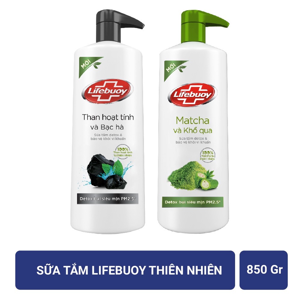 SỮA TẮM DETOX LIFEBUOY – MATCHA & KHỔ QUA – Với công thức với 2 thành phần thiên nhiên, gồm Matcha chống oxy hóa và Khổ qua diệt khuẩn. – Làm sạch sâu, loại bỏ bụi bẩn ô nhiễm và vi khuẩn hằng ngày. – Loại bỏ những nguyên nhân gây nên các vấn đề về da như ngứa, ửng đỏ, nổi mụn. – Lifebuoy là nhãn hiệu sạch khuẩn số 1 thế giới. – 10X bảo vệ khỏi vi khuẩn và ngăn bụi bẩn ô nhiễm. – Phân tử ion bạc giúp phá vỡ lớp vỏ tế bào và các thành phần của vi khuẩn. SỮA TẮM DETOX LIFEBUOY – THAN HOẠT TÍNH & BẠC HÀ – Với công thức với 2 thành phần thiên nhiên, gồm Than hoạt tính thanh lọc và Bạc hà mát lạnh, sạch mụn. – Làm sạch sâu, loại bỏ bụi bẩn ô nhiễm và vi khuẩn hằng ngày. – Loại bỏ những nguyên nhân gây nên các vấn đề về da như ngứa, ửng đỏ, nổi mụn. – Lifebuoy là nhãn hiệu sạch khuẩn số 1 thế giới. – 10X bảo vệ khỏi vi khuẩn và ngăn bụi bẩn ô nhiễm. – Phân tử ion bạc giúp phá vỡ lớp vỏ tế bào và các thành phần của vi khuẩn. Hướng dẫn sử dụng: Làm ướt cơ thể. Lấy một lượng sản phẩm vừa đủ ra lòng bàn tay hoặc bông tắm rồi tạo bọt với một ít nước, sau đó mát-xa lên cơ thể theo chuyển động tròn. Tắm sạch lại với nước. Lưu ý – Dùng túi tiết kiệm đổ đầy chai khi dùng hết – Tránh tiếp xúc với mắt – Nếu dính vào mắt, hãy rửa kỹ bằng nước – Để xa tầm tay trẻ em Hạn sử dụng: 30 tháng kể từ ngày sản xuất Xuất xứ: Việt Nam Bao bì có thể thay đổi tùy đợt nhập hàng