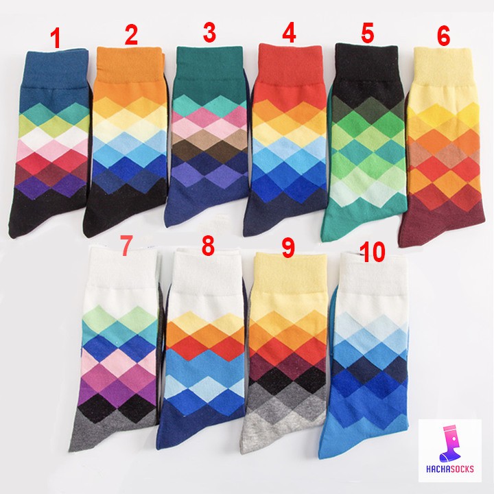 Bộ sản phẩm: Tất Quả Trám Vintage Hình Thoi Đa Sắc.