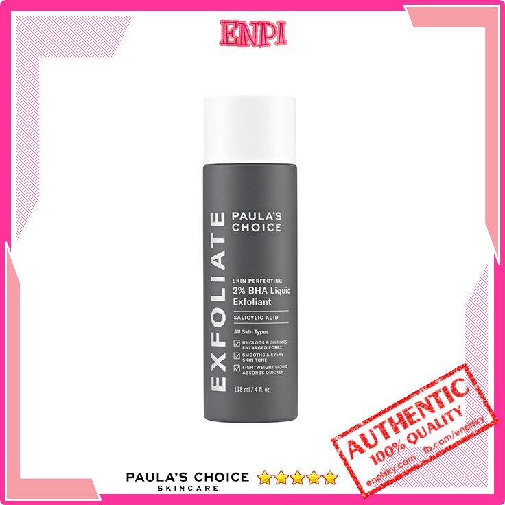 Sản phẩm tẩy tế bào chết hóa học, với công thức dịu nhẹ, không chứa chất làm bào mòn da, dễ dàng thẩm thấu mà không làm bít tắc lỗ chân lông. Loại bỏ sự xuất hiện của nếp nhăn sâu, cải thiện tông màu da ,giúp làn da sáng mịn, rạng rỡ và khỏe mạnh. – Làm giảm dấu hiệu lão hóa, mụn đầu đen, lỗ chân lông to. – Giảm sưng đỏ, cải thiện nếp nhăn sâu. – 2% BHA không làm bít tắc lỗ chân lông và hoàn toàn loại bỏ lỗ chân lông to. – Dùng cho mọi loại da ***Điều gì làm nên khác biệt của sản phẩm? Skin Perfecting 2% BHA Liquid là sản phẩm tẩy tế bào chết hóa học dịu nhẹ, hoàn toàn không có chất bào mòn da, dễ dàng thẩm thấu nhanh trên da, phù hợp cho sử dụng hàng ngày và trên mọi loại da. Đây là sản phẩm bán chạy số 1 của Paula’s Choice trên toàn thế giới, bởi khả năng loại bỏ và thậm chí còn tẩy sạch hoàn toàn các lớp tế bào chết trên da, thêm vào đó vẫn cung cấp ẩm, mang đến cho bạn làn da mịn màng và rạng rỡ hơn bất kỳ sản phẩm cùng dòng trên thị trường. Bạn sẽ cảm nhận thấy sự khác biệt ngay từ lần đầu sử dụng, sản phẩm này có độ PH tối ưu từ 3,2 đến 3,8, kết hợp cùng thành phần làm mềm để đem lại hiệu quả cao nhất. Tất cả các sản phẩm của Paula’s Choice đều 100% không chứa chất tạo mùi, được chứng minh là không gây kích ứng và không kiểm nghiệm trên động vật. ***Sản phẩm này có công dụng gì? Skin Perfecting 2% BHA Liquid nhẹ nhàng loại bỏ những tế bào chết trên da, cho hiệu quả trong việc làm giảm sự bít tắc lỗ chân lông, tái tạo tế bào da mới, mang đến cho bạn làn da mịn màng, hoàn hảo mọi ánh nhìn. Ngoài ra sản phẩm này còn hỗ trợ cải thiện đáng kể kích thước của lỗ chân lông, giúp ổn định lại cấu trúc tế bào da, làm mờ các nếp nhăn nhỏ và nhăn sâu. Bạn sẽ cảm nhận được ngay từ lần đâu tiên sử dụng ! ***Sản phẩm này dành cho ai? Skin Perfecting 2% BHA Liquid được thiết kế dành cho mọi loại da, đặc biệt là những ai đang sở hữu dấu hiệu lão hóa, làn da hỗn hợp thiên dầu, dễ bị bít tắc lỗ chân lông và nổi mụn. Hướng dẫn sử dụng: dùng từ 1 đến 2 lần mỗi ngày sau bước rửa mặt và tonner. Nhẹ nhàng đổ ra tấm bông tẩy trang rồi chấm nhẹ lên toàn bộ khuôn mặt, bao gồm cả vùng mắt (tránh tác động trực tiếp vào mi và lông mi), không cần rửa lại bằng nước. Chú ý: Vào ban ngày, sử dụng kem chống nắng có chỉ số chống nắng có SPF từ 25 đến 30 sau khi sử dụng Skin Perfecting 2% BHA Liquid. #enpi #paulaschoice