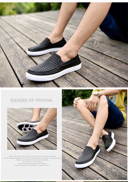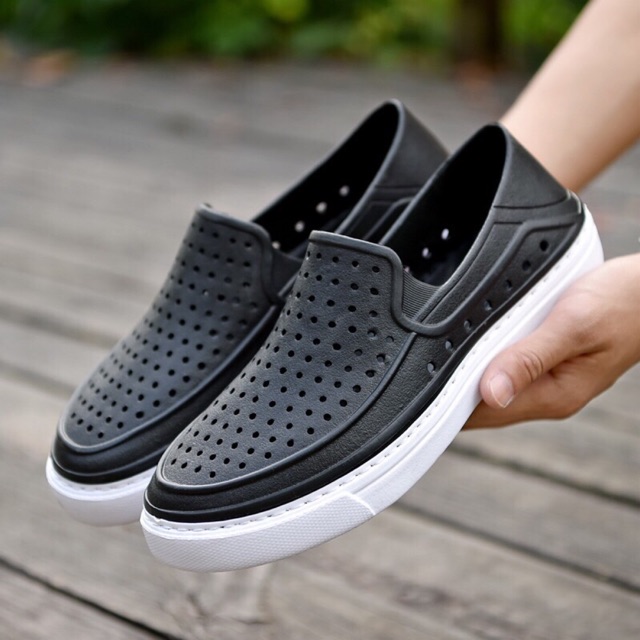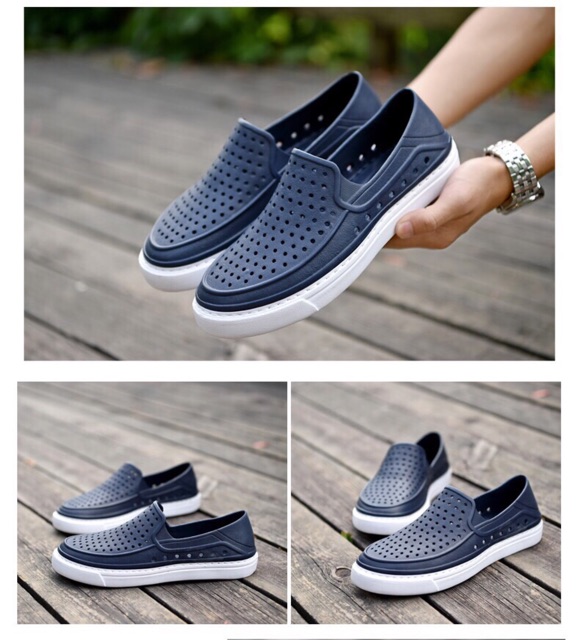 QUÝ KHÁCH THÂN MẾN! NẾU QUÝ KHÁCH HÀNG Ở NỘI THÀNH HÀ NỘI, NẾU CẦN GẤP CÁC BẠN HÃY CHỌN NHÀ VẬN CHUYỂN NOWSHIP HOẶC GRAP ĐỂ ĐƯỢC GIAO TRONG 2 TIẾNG NHÉ Ạ! GIÀY NHỰA NAM SIÊU NHẸ SIÊU CHẤT❣❣ SIZE: 40/41/42/43/44 FROM NHỎ TĂNG 1 SIZE Mô tả: Giày nhựa nam thiết kế linh hoạt dễ dàng kết hợp cùng nhiều phong cách thời trang khác nhau, chú trọng sự thoải mái cho người dùng, và đặc biệt giày rất hữu ích cho các bạn sống ở nước có mùa mưa dài như Việt Nam, một đôi giày nhựa để sẵn trong cốp xe sẽ rất “tiện lội” vào các ngày mưa hoặc triều cường dâng ^^ Thiết kế: Giày nhựa nam là sự kết hợp giữa giày Slip-on Sneaker kinh điển với chất liệu cao su mới, thân giày có lỗ lưới thoáng khí tạo sự thoáng mát cho bàn chân, không gây hầm bí và khó chịu. Phần mặt trong của giày được thiết kế vân nhẹ tạo độ ma sát đủ bám chân, do vậy dù bạn không mang vớ thì cảm giác vẫn chắc chân và dễ chịu khi di chuyển. Chất liệu: Giày nhựa mềm dẻo được sản xuất với thành phần cao su/ nhựa dẻo EVA, có tính linh hoạt, bền dẻo, và an toàn với da người sử dụng. Độ đàn hồi >40% Màu sắc: Đen và xanh than Đế giày làm từ nhựa dẻo được đúc với độ dày phù hợp (~2,3cm) để chịu được trọng lượng người mang trong thời gian dài mà không xẹp, nhưng vẫn tạo độ đàn hồi, cong dẻo để uốn cùng bản chân khi bước đi, tạo sự thoải mái tối đa, hạn chế việc mỏi chân khi bạn vận động. Bề mặt tiếp xúc đất được thiết kế nhiều rãnh, giúp tăng độ bám, chống trơn trượt, đảm bảo sự an toàn cho người mang, khâu viền chắc chắn. BẠN VÀO MỤC “TẤT CẢ SẢN PHẨM” ĐỂ XEM THÊM NHIỀU MẪU KHÁC NHÉ. #fittop #keitop #bagtop #giaynhua #giaynhuanam #giaynhuanu #giaynhuadeo #giaocaosu #giaynhuaem #giaycap #giaycouple #giaynamdep #giayluoi #giaydimua #giaynhuathom #giaynative #giaytot #giaydep Fittop, Keitop, Bagtop, giày, giay, giày nhựa, giày nhựa dẻo, giày nhựa mềm, giày cao su, giày EVA, giày tốt, giày nhựa êm, giày cặp, giày couple, giày đôi, giày đẹp, giày nam, giày nữ, giày nam nữ, giày lười, giày đi dạo, giày đi mưa, giày mưa, giày nhựa thơm, giày tốt, giày đẹp, giày đi biển, giày tiện lợi, giày thời trang, giày native, giày native jefferson, native, native jefferson, phụ kiện, giày sneaker, sneakers #giay #nhưa #đi #mưa #giay #nam #giaythoangkhi #giay #lo #thoang