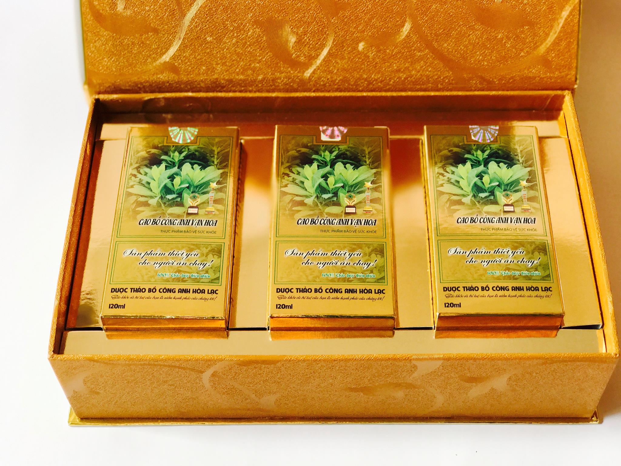Thanh lọc và hỗ trợ sản sinh các tế bào máu mới khỏe mạnh đi nuôi tế bào. Đào thải các độc tố bạn đưa vào cơ thể hàng ngày do tiếp xúc với môi trường khói bụi, thức ăn bị nhiễm hóa chất. Ổn định huyết áp, làm giảm nguy cơ đột quỵ, xơ vữa động mạch vành và các bệnh về tim mạch khác. Giúp bổ gan, thanh nhiệt giải độc, tăng cường chức năng gan. Hỗ trợ điều trị các bệnh viêm nhiễm, rối loạn đường tiêu hóa, viêm loét dạ dày, xuất huyết đại tràng. Cải thiện sức khỏe đường ruột, giúp hỗ trợ điều trị chứng tiêu chảy và táo bón. Phòng ngừa các bệnh về đường hô hấp. Hỗ trợ điều trị bệnh gút, loãng xương, chứng run chân tay, và các bệnh về xương khớp khác… Là nguồn dinh dưỡng dồi dào bổ sung các vi chất thiếu hụt cho những người ăn chay và người đang trong tình trạng suy nhược cơ thể. Làm giảm các triệu chứng mất ngủ, mệt mỏi, suy nhược cơ thể, làm việc mất tập trung. Làm đẹp da: chống lão hóa, hỗ trợ trị mụn nhọt, điều hòa khí huyết giúp cơ thể cân đối. Thực Phẩm Bảo Vệ Sức Khỏe Cao Thảo Dược Bồ Công Anh Vạn Hoa – Bộ sản phẩm 3 Lọ – Sản Phẩm Chỉ Dành Cho Người Ăn Chay. THÀNH PHẦN: 100% thảo dược từ thiên nhên như cây Bồ công anh, cây xạ đen, râu ngô, hoàn ngọc, phấn hoa, atiso cùng một số loại dược thảo, tinh dầu quý khác. Các loại vitamin : A, B1, B2, B3,B5, B6,B12, C, D,E ,K, với 22 loại axit amin, 27 chất khoáng( kẽm, sắt, chất vôi, magie, lưu huỳnh, phosphor, iron, CÔNG DỤNG NỔI BẬT CỦA THẢO DƯỢC BỒ CÔNG ANH – Thanh lọc và hỗ trợ sản sinh các tế bào máu mới khỏe mạnh đi nuôi tế bào. – Đào thải các độc tố bạn đưa vào cơ thể hàng ngày do tiếp xúc với môi trường khói bụi, thức ăn bị nhiễm hóa chất. – Ổn định huyết áp, làm giảm nguy cơ đột quỵ, xơ vữa động mạch vành và các bệnh về tim mạch khác. – Giúp bổ gan, thanh nhiệt giải độc, tăng cường chức năng gan. – Hỗ trợ điều trị các bệnh viêm nhiễm, rối loạn đường tiêu hóa, viêm loét dạ dày, xuất huyết đại tràng. Cải thiện sức khỏe đường ruột, giúp hỗ trợ điều trị chứng tiêu chảy và táo bón. – Phòng ngừa các bệnh về đường hô hấp. – Hỗ trợ điều trị bệnh gút, loãng xương, chứng run chân tay, và các bệnh về xương khớp khác… – Là nguồn dinh dưỡng dồi dào bổ sung các vi chất thiếu hụt cho những người ăn chay và người đang trong tình trạng suy nhược cơ thể. – Làm giảm các triệu chứng mất ngủ, mệt mỏi, suy nhược cơ thể, làm việc mất tập trung. – Làm đẹp da: chống lão hóa, hỗ trợ trị mụn nhọt, điều hòa khí huyết giúp cơ thể cân đối. HƯỚNG DẪN SỬ DỤNG – Ngày dùng 2 lần (trước bữa ăn sáng và tối 30 phút hoặc những lúc đói mệt mỗi lần pha 5 – 10 gram cao (lượng bằng 1 thìa cà phê) pha cùng 1 ly 200ml nước ấm với 20 gram mật ong (có thể giảm độ ngọt tùy khẩu vị). Lưu ý: Người sức khỏe yếu nên sử dụng ngày 3 lần để cho hiệu quả tối ưu. SHOP CAM KẾT: + Tiêu chuẩn: TCCS + Số ĐKBCB: 8262/2018/ĐKSP + Sản phẩm đầy đủ giấp phép của bộ y tế. Cao Bồ Công Anh Vạn Hoa được sản xuất trên dây chuyền công nghệ khép kín, đảm bảo an toàn vệ sinh thực phẩm, hoàn toàn không có hóa chất tạo màu và tạo mùi. Tự hào là 1 trong 50 doanh nghiệp được nhận cúp vàng “ Sản phẩm uy tín, chất lượng, an toàn vì sức khỏe người tiêu dùng” do Hội Khoa học và công nghệ, lương thực, thực phẩm Việt nam trao tặng năm 2015 đồng thời vinh dự nhận hai chữ “ Tâm” và “Tín” bằng vàng do Hiệp Hội Doanh Nghiệp Nhỏ Và Vừa Việt Nam trao tặng cho lãnh đão doanh nghiệp năm 2016. Được sản xuất trên dây chuyền công nghệ khép kín, đảm bảo an toàn vệ sinh thực phẩm, với mong muốn đem đến một sản phẩm sạch, an toàn, chất lượng thật đến tận tay người tiêu dùng. Từ quy trình trồng cấy, sản xuất đều theo 1 quy chuẩn nghiêm ngặt, đảm bảo tuyệt đối 3 Không: Không phun thuốc kích thích, thuốc diệt cỏ, trừ sâu. Không thêm chất bảo quản. Không dùng hương liệu tạo màu tạo mùi. Một số hình ảnh khu trồng cấy của sản phẩm Hình Ảnh khu trồng cấy cây bồ công anh. Hình Ảnh khu trồng cấy cây bồ công anh. Hình ảnh cây bồ công anh được trồng ở trên núi. Hình ảnh các cô công nhận làm cỏ bằng tay, không phun thuốc diệt cỏ. Hơn thế nữa, lợi thế của doanh nghiệp là làm chủ được toàn bộ quy trình trồng cấy và sản xuất trên diện tích đất và xưởng sản xuất hoàn toàn độc lập nên rất dễ dàng kiểm soát chất lượng sản phẩm qua các khâu. Khác hẳn với các doanh nghiệp khác, toàn bộ ban lãnh đạo công ty đều ăn chay trường và là phật tử chính tâm của đạo Phật nên hơn ai hết chúng tôi hiểu được Cao Bồ Công Anh Vạn Hoa cần thiết như thế nào trong cuộc sống hàng ngày của chúng ta. Cao Bồ Công Anh Vạn Hoa là sản phẩm thiết yếu, bổ sung sức khỏe cho mọi gia đình!