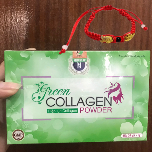 Bộ sản phẩm Thực Phẩm Bảo Vệ Sức Khỏe Diệp lục Collagen (Green Collagen Powder) + Tặng kèm Vòng Phong Thủy – đẹp da, chống lão hóa, cân bằng nội tiết Thương hiệu: Diệp Lục Collagen.