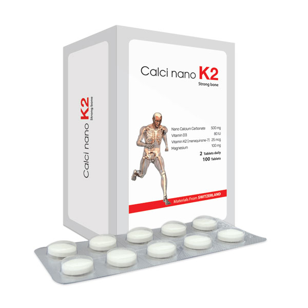 Nano Calcium Carbonate 500 mg Vitamin D3 80 IU Vitamin K2 25 mcg Magnesium 100 mg Hỗ trợ tăng chiều cao, phòng giảm loãng xương, còi xương với Calci Nano K2 Calci Nano K2 đặc chế từ Nano Calcium Carbonate, Vitamin D3, Vitamin K2, Magnesium – Nguyên liệu nhập khẩu từ Thụy Sĩ. Công dụng: Giúp bổ sung vitamin D, vitamin K2 và canxi hàng ngày cho trẻ trong giai đoạn tăng trưởng, người cao tuổi, phụ nữ có thai và cho con bú. Giúp hấp thu canxi, phòng và giảm tình trạng loãng xương ở những người ăn uống thiếu canxi, còi xương ở trẻ em. Đối tượng sử dụng: Trẻ em trên 5 tuổi, trẻ đang trong giai đoạn phát triển, người lớn, phụ nữ mang thai và cho con bú, người bị loãng xương, trẻ em bị còi xương. Cách dùng: – Trẻ em trên 5 tuổi : Ngày 1 lần, mỗi lần 1 viên – Thiếu niên, Người lớn, Phụ nữ mang thai và cho con bú: Ngày 3 lần, mỗi lần 1 viên. – Sản phẩm này không phải là thuốc, không có tác dụng thay thế thuốc chữa bệnh. Quy cách đóng gói: Hộp 100 viên Công ty sản xuất: Mediphar USA Lưu ý: Tuỳ cơ địa mỗi người