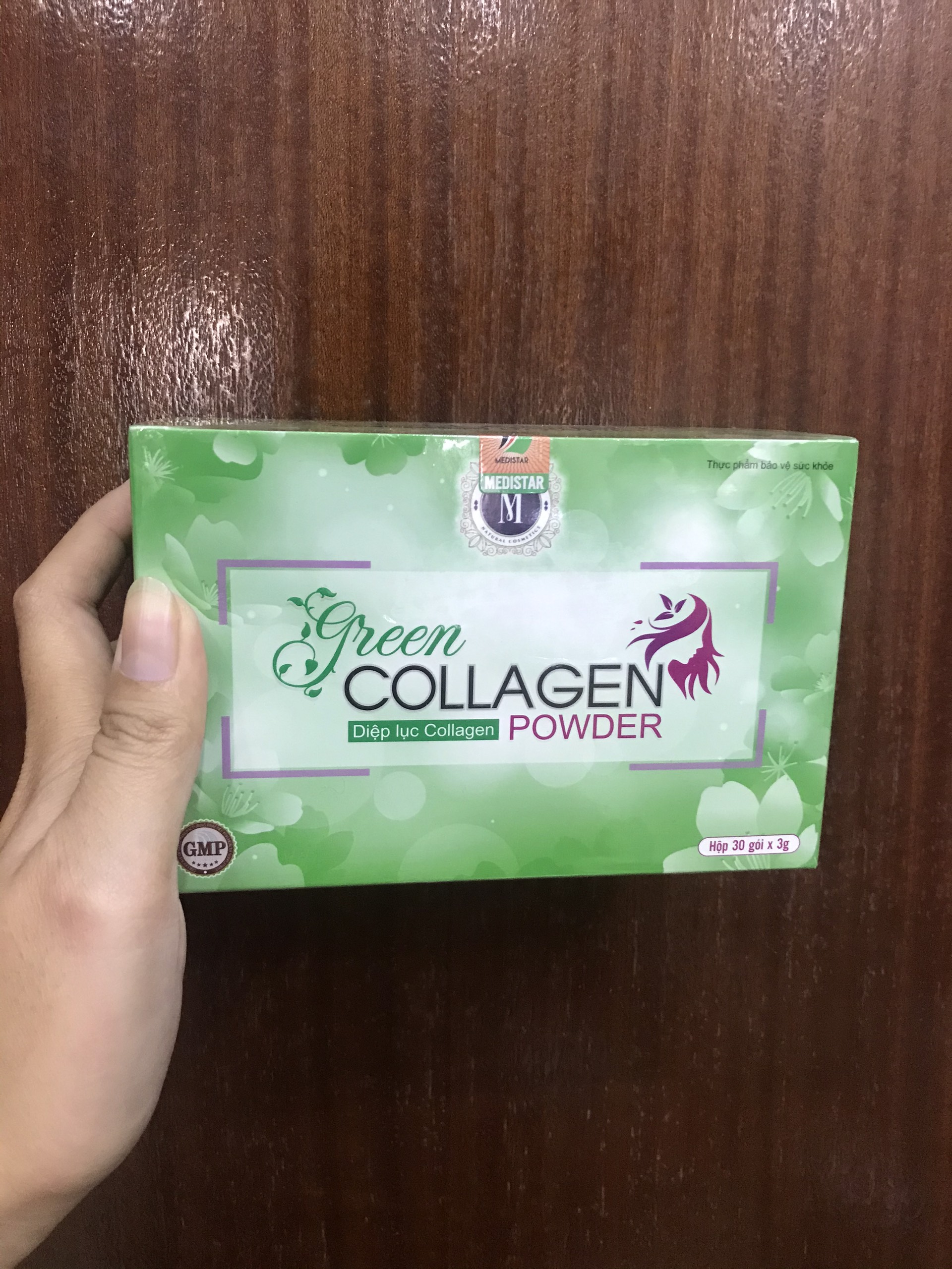 Sản Phẩm 100% Thiên Nhiên Bổ sung và cân bằng chất xơ cho cơ thể. 1 gói Diệp lục Collagen tương đương 1kg rau xanh đó bạn. Hỗ trợ tăng tính đàn hồi cho da, làm mờ các vết nám, tàn nhang trên da, cho da săn chắc, sáng hồng, mờ nếp nhăn. Cấp nước nhanh cho da trở nên căng mướt mượt mà sau 7 ngày. Mượt tóc, ngăn ngừa rụng tóc, móng tay bóng khoẻ. Tăng cường chức năng sinh lý nữ, không còn hiện tượng khô hạn ở nữ. Giảm cáu gắt, bốc hoả khó chịu, kém tươi sắc. Đặc biệt: hỗ trợ chóng táo bón hiệu quả. Sản Phẩm Diệp Lục Collagen – Green Collagen Powder Diệp lục (hay còn gọi là diệp lục tố, chlorophyll) là sắc tố quang tổng hợp màu xanh lá cây có ở thực vật, tảo, vi khuẩn lam. Diệp lục được ví giống như là máu của cây xanh, nó là thành phần quan trọng giúp cho quá trình quang hợp của cây xanh, chuyển giao ánh sáng mặt trời hấp thu được thành năng lượng nuôi cây xanh. Đặc biệt, sản phẩm Green Collagen Powder hay còn gọi là Diệp lục Collagen của thương hiệu Mommy Beauty được bổ sung thêm các thành phần như: Collagen, Isoflavone, Vitamin C, biotin,… không chỉ giúp cơ thể khỏe mạnh hơn, giúp lọc máu, thanh lọc cơ thể, phòng chống bệnh tật, tăng cường sức khỏe Đối tượng sử dụng: – Dùng cho nữ giới khô da, nám da, sạm da, nhăn da, tàn nhang. – Phụ nữ tuổi tiền mãn kinh, mãn kinh với các triệu chứng: Bốc hỏa, kém tươi sắc, tóc khô xơ, rụng nhiều. – Người thường xuyên phải làm việc ngoài trời, người hay tiếp xúc với các tác nhân có hại. Dù bạn là ai: nhân viên văn phòng, giáo viên, người lao động chân tay hay nội trợ, nếu bạn không cung cấp đủ lượng chất xơ trong rau xanh hằng ngày thì nguy cơ táo bón, da dẻ sạm nám, thiếu sức sống, thiếu đàn hồi là điều dễ hiểu. Đặc biệt hơn là phụ nữ sau sinh với nguy cơ táo bón gây trĩ nặng, nóng sữa, làn da và vóc dáng xuống cấp không còn được như thời con gái, không còn ham muốn và gặp tình trạng khô hạn, hay cáu gắt, mệt mỏi. Công dụng chính của Diệp Lục Collagen: – Bổ sung và cân bằng chất xơ cho cơ thể. 1 gói Diệp lục Collagen tương đương 1kg rau xanh đó bạn. – Hỗ trợ tăng tính đàn hồi cho da, làm mờ các vết nám, tàn nhang trên da, cho da săn chắc, sáng hồng, mờ nếp nhăn. – Cấp nước nhanh cho da trở nên căng mướt mượt mà sau 7 ngày. – Mượt tóc, ngăn ngừa rụng tóc, móng tay bóng khoẻ. – Tăng cường chức năng sinh lý nữ, không còn hiện tượng khô hạn ở nữ. Giảm cáu gắt, bốc hoả khó chịu, kém tươi sắc. – Đặc biệt: hỗ trợ chóng táo bón hiệu quả. – Bổ sung và cân bằng chất xơ cho cơ thể. 1 gói Diệp lục Collagen tương đương 1kg rau xanh đó bạn (Dù bạn là ai, làm công việc gì nếu bạn không cung cấp đủ lượng chất xơ trong rau xanh hằng ngày thì nguy cơ táo bón, da dẻ sạm nám, thiếu sức sống, thiếu đàn hồi là điều dễ hiểu.) – Hỗ trợ làm chậm quá trình oxy hóa, giảm nguy cơ lão hóa da, nhăn da cho da sáng hơn. – Hỗ trợ tăng tính đàn hồi cho da, làm mờ các vết nám, tàn nhang trên da, tốt cho tóc, móng – Hỗ trợ tăng cường sức khỏe & tăng chức năng sinh lý nữ (Đặc biệt hơn là phụ nữ sau sinh với sự suy giảm nội tiết tố nữ trầm trọng gây nguy cơ táo bón, trĩ, nóng sữa, tóc rụng nhiều, làn da và vóc dáng xuống cấp không còn được như thời con gái, không còn ham muốn và gặp tình trạng khô hạn, hay cáu gắt, mệt mỏi.) Bạn có thể được dùng để thay thế rau, và giúp cho cơ thể bù đắp những thiếu hụt những vi chất từ các bữa ăn vội vàng của cuộc sống bận rộn. Hãy Đầu tư cho sức khỏe cả gia đình bạn 1 hộp Bột diệp lục, hay tặng bố mẹ 2 bên mỗi bên 1 hộp vì bột diệp lục là sản phẩm vô cùng tuyệt vời để bảo vệ tài sản lớn nhất của con người: sức khỏe hoàn hảo. ➫ Quy cách đóng gói: 1 hộp 30 gói. 1 gói 3gram. ➫ Bảo quản: Nơi khô ráo, tránh ánh sáng mặt trời Để xa tầm tay trẻ em ➫ Cách sử dụng: 1 gói 3g pha với 100-150ml nước ấm, uống ngay sau khi pha. Mỗi ngày sử dụng 1-2 gói Thời gian dùng sản phẩm tốt nhất vào buổi sáng trước 8g Lưu ý : • Thực phẩm này không phải là thuốc, không có tác dụng thay thế thuốc chữa bệnh. • Không sử dụng nếu không tem sản phẩm có dấu hiệu không còn nguyên vẹn. • Để xa tầm tay trẻ em.