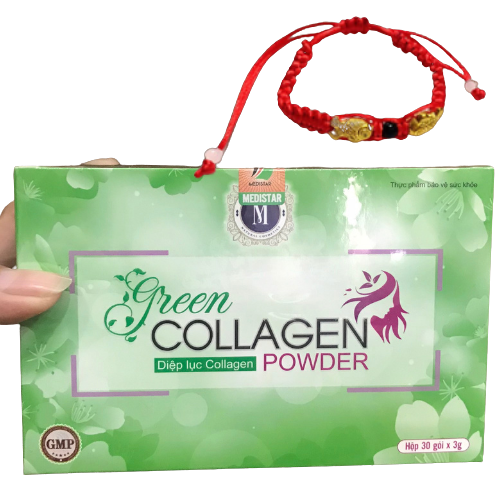 Sản Phẩm 100% Thiên Nhiên Bổ sung và cân bằng chất xơ cho cơ thể. 1 gói Diệp lục Collagen tương đương 1kg rau xanh đó bạn. Hỗ trợ tăng tính đàn hồi cho da, làm mờ các vết nám, tàn nhang trên da, cho da săn chắc, sáng hồng, mờ nếp nhăn. Cấp nước nhanh cho da trở nên căng mướt mượt mà sau 7 ngày. Mượt tóc, ngăn ngừa rụng tóc, móng tay bóng khoẻ. Tăng cường chức năng sinh lý nữ, không còn hiện tượng khô hạn ở nữ. Giảm cáu gắt, bốc hoả khó chịu, kém tươi sắc. Đặc biệt: hỗ trợ chóng táo bón hiệu quả. Sản Phẩm Diệp Lục Collagen – Green Collagen Powder + Tặng kèm vòng tay phong thủy cực chất Diệp lục (hay còn gọi là diệp lục tố, chlorophyll) là sắc tố quang tổng hợp màu xanh lá cây có ở thực vật, tảo, vi khuẩn lam. Diệp lục được ví giống như là máu của cây xanh, nó là thành phần quan trọng giúp cho quá trình quang hợp của cây xanh, chuyển giao ánh sáng mặt trời hấp thu được thành năng lượng nuôi cây xanh. Đặc biệt, sản phẩm Green Collagen Powder hay còn gọi là Diệp lục Collagen của thương hiệu Mommy Beauty được bổ sung thêm các thành phần như: Collagen, Isoflavone, Vitamin C, biotin,… không chỉ giúp cơ thể khỏe mạnh hơn, giúp lọc máu, thanh lọc cơ thể, phòng chống bệnh tật, tăng cường sức khỏe Đối tượng sử dụng: – Dùng cho nữ giới khô da, nám da, sạm da, nhăn da, tàn nhang. – Phụ nữ tuổi tiền mãn kinh, mãn kinh với các triệu chứng: Bốc hỏa, kém tươi sắc, tóc khô xơ, rụng nhiều. – Người thường xuyên phải làm việc ngoài trời, người hay tiếp xúc với các tác nhân có hại. Dù bạn là ai: nhân viên văn phòng, giáo viên, người lao động chân tay hay nội trợ, nếu bạn không cung cấp đủ lượng chất xơ trong rau xanh hằng ngày thì nguy cơ táo bón, da dẻ sạm nám, thiếu sức sống, thiếu đàn hồi là điều dễ hiểu. Đặc biệt hơn là phụ nữ sau sinh với nguy cơ táo bón gây trĩ nặng, nóng sữa, làn da và vóc dáng xuống cấp không còn được như thời con gái, không còn ham muốn và gặp tình trạng khô hạn, hay cáu gắt, mệt mỏi. Công dụng chính của Diệp Lục Collagen: – Bổ sung và cân bằng chất xơ cho cơ thể. 1 gói Diệp lục Collagen tương đương 1kg rau xanh đó bạn. – Hỗ trợ tăng tính đàn hồi cho da, làm mờ các vết nám, tàn nhang trên da, cho da săn chắc, sáng hồng, mờ nếp nhăn. – Cấp nước nhanh cho da trở nên căng mướt mượt mà sau 7 ngày. – Mượt tóc, ngăn ngừa rụng tóc, móng tay bóng khoẻ. – Tăng cường chức năng sinh lý nữ, không còn hiện tượng khô hạn ở nữ. Giảm cáu gắt, bốc hoả khó chịu, kém tươi sắc. – Đặc biệt: hỗ trợ chóng táo bón hiệu quả. – Bổ sung và cân bằng chất xơ cho cơ thể. 1 gói Diệp lục Collagen tương đương 1kg rau xanh đó bạn (Dù bạn là ai, làm công việc gì nếu bạn không cung cấp đủ lượng chất xơ trong rau xanh hằng ngày thì nguy cơ táo bón, da dẻ sạm nám, thiếu sức sống, thiếu đàn hồi là điều dễ hiểu.) – Hỗ trợ làm chậm quá trình oxy hóa, giảm nguy cơ lão hóa da, nhăn da cho da sáng hơn. – Hỗ trợ tăng tính đàn hồi cho da, làm mờ các vết nám, tàn nhang trên da, tốt cho tóc, móng – Hỗ trợ tăng cường sức khỏe & tăng chức năng sinh lý nữ (Đặc biệt hơn là phụ nữ sau sinh với sự suy giảm nội tiết tố nữ trầm trọng gây nguy cơ táo bón, trĩ, nóng sữa, tóc rụng nhiều, làn da và vóc dáng xuống cấp không còn được như thời con gái, không còn ham muốn và gặp tình trạng khô hạn, hay cáu gắt, mệt mỏi.) Bạn có thể được dùng để thay thế rau, và giúp cho cơ thể bù đắp những thiếu hụt những vi chất từ các bữa ăn vội vàng của cuộc sống bận rộn. Hãy Đầu tư cho sức khỏe cả gia đình bạn 1 hộp Bột diệp lục, hay tặng bố mẹ 2 bên mỗi bên 1 hộp vì bột diệp lục là sản phẩm vô cùng tuyệt vời để bảo vệ tài sản lớn nhất của con người: sức khỏe hoàn hảo. ➫ Quy cách đóng gói: 1 hộp 30 gói. 1 gói 3gram. ➫ Bảo quản: Nơi khô ráo, tránh ánh sáng mặt trời Để xa tầm tay trẻ em ➫ Cách sử dụng: 1 gói 3g pha với 100-150ml nước ấm, uống ngay sau khi pha. Mỗi ngày sử dụng 1-2 gói Thời gian dùng sản phẩm tốt nhất vào buổi sáng trước 8g Lưu ý : • Thực phẩm này không phải là thuốc, không có tác dụng thay thế thuốc chữa bệnh. • Không sử dụng nếu không tem sản phẩm có dấu hiệu không còn nguyên vẹn. • Để xa tầm tay trẻ em.