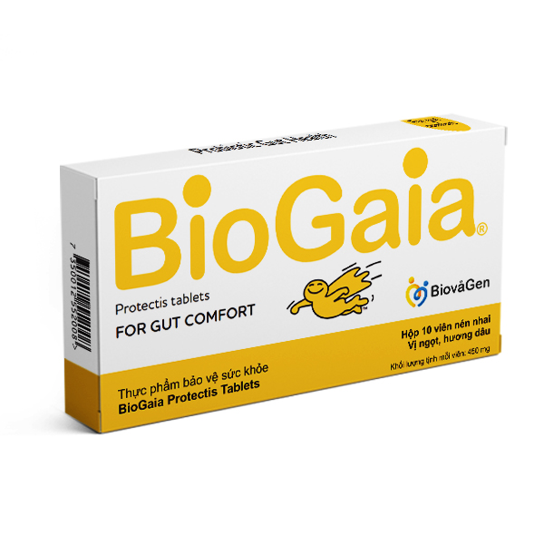 Tăng hấp thu dinh dưỡng, miễn dịch cho bà bầu – Thiết lập hệ tiêu hóa, miễn dịch khỏe mạnh cho con ngay từ đầu đời Là men vi sinh (Probiotic) có nguồn gôc từ sữa mẹ vùng Andes, Peru. FDA Hoa Kỳ chứng nhận an toàn cấp độ cao nhất (GRAS) – An toàn trên cả phụ nữ mang thai, thai nhi và trẻ sinh non. Sản phẩm có 137 nghiên cứu trên 12.829 người chứng minh An toàn – Hiệu quả VIÊN BIOGAIA PROTECTIS – BỔ SUNG MEN VI SINH PROBIOTIC CHO BÀ BẦU Tăng hấp thu dinh dưỡng, miễn dịch cho bà bầu – Thiết lập hệ tiêu hóa, miễn dịch khỏe mạnh cho con ngay từ đầu đời Thành phần 100% tự nhiên – Probiotic duy nhất trên thế giới có nguồn gôc từ sữa mẹ vùng Andes, Peru. FDA Hoa Kỳ chứng nhận an toàn cấp độ cao nhất (GRAS) – An toàn trên cả phụ nữ mang thai, thai nhi và trẻ sinh non. Sản phẩm có 137 nghiên cứu trên 12.829 người chứng minh An toàn – Hiệu quả. CÔNG DỤNG SẢN PHẨM ĐÃ ĐƯỢC CHỨNG MINH: Tăng cường hấp thu dinh dưỡng & miễn dịch cho mẹ bầu Thúc đẩy quá trình tiêu hóa & hấp thu dinh dưỡng, vitamin và khoáng chất Giảm tình trạng táo bón, đầy hơi, buồn nôn Phòng ngừa nhiễm khuẩn đường tiêu hóa & hô hấp Giúp giảm sử dụng kháng sinh trong trong suốt thai kỳ Ngăn ngừa rối loạn tiêu hóa do nhiễm khuẩn hoặc do kháng sinh Thiết lập hệ tiêu hóa & miễn dịch khỏe mạnh từ đầu đời cho con Thúc đẩy quá trình tiêu hóa & hấp thu dinh dưỡng, vitamin và khoáng chất Giảm hội chứng khóc dạ đề, nôn trớ sinh lý, táo bón chức năng ở giai đoạn sơ sinh Ngăn ngừa táo bón, tiêu chảy, viêm ruột cấp tính, đau bụng chức năng Tăng cường miễn dịch, giảm sử dụng thuốc kháng sinh Ngăn ngừa rối loạn tiêu hóa do nhiễm khuẩn hoặc do kháng sinh (Sản phẩm duy nhất có 137 nghiên cứu lâm sàng ở 12.829 người chứng minh hiệu quả & an toàn.) THÀNH PHẦN & LIỀU DÙNG Thành phần: – 100 triệu lợi khuẩn L.reuteri Protectis – Isomalt, xylitol, tinh dầu cọ, hương dâu tự nhiên, citric acid. Đối tượng sử dụng: – Phụ nữ mang thai và cho con bú, trẻ em trên 2 tuổi và người lớn Liều dùng: – 1-2 viên mỗi ngày. Có thể nhai hoặc uống cùng với nước Bảo quản: Bảo quản tốt nhất ở 5 – 25 độ C Hạn dùng 24 tháng kể từ ngày sản xuất . Ngày sản xuất và hạn sử dụng in trên bao bì. ——————————————————————————————————————— BẠN CÓ BIẾT ? 80% sức khỏe miễn dịch liên quan đến hệ vi sinh đường ruột . Chính vì vậy, để có hệ thống miễn dịch hoạt động tốt cần có một hệ vi sinh khỏe mạnh. ———————————————— CƠ CHẾ HOẠT ĐỘNG CỦA L.REUTERI PROTECTIS Theo nhà khoa học Ivan Casas, L.reuteri Protectis là chủng lợi khuẩn (probiotic) thiết yếu đầu tiên mẹ cần truyền sang cho con ngay từ lúc còn là bào thai, trong quá trình sinh nở và cho con bú để giúp con thiết lập một hệ vi sinh đường ruột và hệ miễn dịch khỏe mạnh ngay từ đầu đời. L.reuteri Protectis có cơ chế hoạt động rất đa dạng: Thúc đẩy tiêu hóa & hấp thu dinh dưỡng 1. Điều hòa nhu động ruột, thúc đẩy tiêu hóa & hấp thu dinh dưỡng, khoáng chất, vitamin 2. Ngăn ngừa & giảm tình trạng rối loạn tiêu hóa: táo bón, tiêu chảy, nôn trớ,đầy hơi 3. Giảm hội chứng khóc dạ đề (đau bụng co thắt ) ở giai đoạn sơ sinh 4. Sản xuất chất điều hòa thần kinh làm giảm đau, giảm lo lắng và trầm cảm Tăng cường sức khỏe miễn dịch bằng cách hỗ trợ 3 hàng rào bảo vệ đường ruột 1. Sản sinh reuterin, acid lactic, acid acetic ức chế sự phát triển của mầm bệnh, vi khuẩn và virus 2. Tăng liên kết niêm mạc ruột 3. Kích thích sản xuât IgA và tế bào lympho T, cải thiện đáp ứng miễn dịch —————————————————————- L.REUTERI PROTECTIS HƠN CẢ MEN VI SINH (PROBIOTIC) THÔNG THƯỜNG 1. Probiotic duy nhất trên thế giới có nguồn gốc từ sữa mẹ L.reuteri Protectis được phân lập từ sữa mẹ nên sinh trưởng tốt trong đường tiêu hóa của con người. Đây cũng là một trong số ít những Probiotic đồng tiến hóa với con người ngay từ thời kỳ đầu tiên. 2. Probiotic đúng chuẩn WHO Sống và phát triển tự nhiên trong cơ thể người Được phân lập đến chủng Đảm bảo đủ liều cho tới khi hết hạn sử dụng Hiệu quả phải được chứng minh qua các nghiên cứu lâm sàng có đối chứng trên người Có bằng chứng về độ an toàn trên người 3. An toàn cấp độ cao nhất GRAS FDA , cấp bởi Cục quản lý thực phẩm và dược phẩm Hoa Kỳ 4. Không chứa độc tố hoặc gen kháng kháng sinh chuyển giao 5. Có 137 nghiên cứu trên 12.829 người chứng minh hiệu quả. (Sản phẩm không phải thuốc, không có tác dụng thay thế thuốc chữa bệnh)