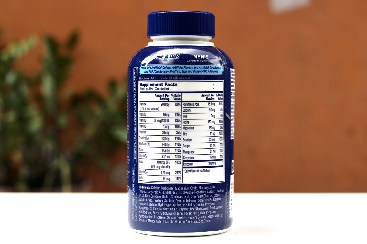 Bổ sung vitamin, chất khoáng thiết yếu mỗi ngày, giúp nam giới khỏe mạnh hơn. Tăng cường đề kháng và miễn dịch, làm giảm nguy cơ mắc bệnh Hỗ trợ tim mạch, phòng ngừa bệnh tim (*) Tăng cường sức mạnh cơ bắp, phát triển cơ xương khỏe mạnh, dẻo dai Ngăn ngừa chứng mệt mỏi, suy nhược, giảm stress,.. Viên Uống Bổ Sung Vitamin Tổng Hợp – One A Day Men Health Formula 300 Viên Của Mỹ Vitamin tổng hợp One A Day Men Health Formula 300 viên cung cấp hơn 20 loại vitamin + khoáng chất cần thiết cho nam giới để tăng cường sức khỏe, sinh lực, tăng năng lượng giúp hoạt động hiệu quả, đồng thời làm giảm nguy cơ mắc bệnh. Sản phẩm được ưa chuộng tại Mỹ và nhiều quốc gia trên Thế giới. Giới thiệu sản phẩm One A Day Men Health Formula 300 viên: ➤ Nam giới là phái mạnh, chính vì vậy, hãy biết chăm lo sức khỏe của chính mình, đừng để áp lực công việc, gánh nặng cơm áo gạo tiền khiến chơ thể bị suy nhược, sức khỏe giảm sút, đau ốm bệnh tật. ➤ Tại rất nhiều quốc gia trên Thế giới, đặc biệt là quốc gia phát triển, những người đàn ông bận rộn thường chọn cho mình cách bổ sung dưỡng chất bằng One A Day Men’s Health Formula 300 viên ➤ Viên uống One A Day cho nam là viên uống tổng hợp vitamin hoàn chỉnh với công thức đặc biệt giúp hỗ trợ vấn đề sức khỏe của nam giới (dưới 50 tuổi), tăng năng lượng, tăng cường sinh lực, tăng đề kháng giúp cơ thể khỏe mạnh cường tráng, sẵn sàng cho một ngày làm việc tích cực và hiệu quả. Công dụng của One A Day Men’s Health Formula 300 viên: ☞ Bổ sung vitamin, chất khoáng thiết yếu mỗi ngày, giúp nam giới khỏe mạnh hơn. ☞ Tăng cường đề kháng và miễn dịch, làm giảm nguy cơ mắc bệnh ☞ Hỗ trợ tim mạch, phòng ngừa bệnh tim (*) ☞ Vitamin tổng hợp One A Day chứa nhiều vitamin nhón B giúp chuyển hóa dưỡng chất thành năng lượng, giúp đàn ông tràn đầy sinh lực, làm việc hiệu quả ☞ Tăng cường sức mạnh cơ bắp, phát triển cơ xương khỏe mạnh, dẻo dai ☞ Ngăn ngừa chứng mệt mỏi, suy nhược, giảm stress, ☞ Hỗ trợ sức khỏe tuyến tiền liệt, tăng cường sin.h lý, tăng số lượng và chất lượng tinh trùng, ngừa vô sinh (*) ☞ Vitamin tổng hợp One A Day Men’s 300 viên thực sự cần thiết cho người đàn ông hiện đại, sản phẩm thích hợp với độ tuổi từ 18 – 49 tuổi. Viên uống vitamin tổng hợp One A Day Men’s Health Formula có tốt không? Vitamin tổng hợp One A Day được sản xuất dựa trên tiêu chuẩn nghiêm ngặt, đạt tiêu chuẩn quốc tế trước khi được lưu thông trên thị trường. Sản phẩm không chứa chất tạo màu, hương vị, gluten, lúa mì, sữa, không gây dị ứng. Hàm lượng của mỗi thành phần vi khoáng phù hợp với cơ địa hấp thu của nam giới, trong khi đó, không hề có tác dụng phụ nào gây ảnh hưởng xấu đến sức khỏe. One a day men đã được ưa chuộng trên thị trường Thế giới, những đánh giá rất tích cực trên Amazon – Trang web thương mại lớn nhất nước Mỹ sẽ giúp bạn trả lời câu hỏi sản phẩm này có tốt hay không. Vì sao nên bổ sung vitamin tổng hợp One a day? ● Nam giới là trụ cột của gia đình, chắc chắn cần phải làm việc nhiều hơn, chịu nhiều áp lực, stress, trong khi đó, chế độ ăn uống không đảm bảo, thực phẩm bẩn mất vệ sinh, những cuộc gặp gỡ nhậu nhẹt kéo dài, và nhiều yếu tố khác khiến cho sức khỏe giảm sút, nguy cơ mắc bệnh cao hơn, làm giảm chất lượng cuộc sống và hiệu quả công việc. ● Bổ sung vitamin tổng hợp là điều vô cùng cần thiết để cung cấp những dưỡng chất mà bạn có thể không bổ sung đủ hàng ngày. Sản phẩm của Mỹ đã được rất nhiều quốc gia trên Thế giới tin dùng với hiệu quả tốt, không có tác dụng phụ. Thành phần: Có hơn 20 loại vitamin và khoáng chất từ nhóm A, B1, B9 Acid Folic, B12, C, D, E đến kẽm, Mn, Se, Mg, Lycopene… Hướng dẫn sử dụng: Uống 1 viên/ngày, uống trong hoặc ngay sau bữa ăn để hấp thu tốt nhất. Không sử dụng quá liều, không dùng cho tre rem. Những người đang điều trị bệnh hoặc dùng bất kỳ thực phẩm chức năng khác vui lòng tham khảo ý kiến chuyên gia trước khi dùng sản phẩm này. (*) Lưu ý: One A Day là thực phẩm chức năng hỗ trợ sức khỏe, không có tác dụng thay thế thuốc chữa bệnh. Tác dụng của sản phẩm còn tùy thuộc vào cơ địa của mỗi người.