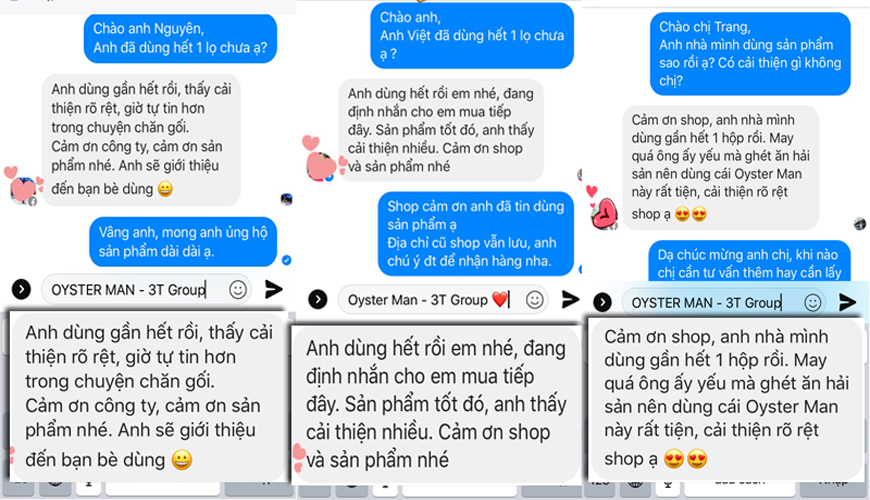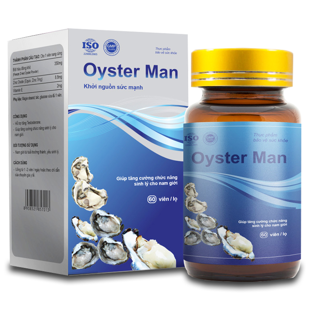 – Tăng cường chức năng sinh lý phái mạnh – Hỗ trợ điều trị yếu sinh lý, xuất tinh sớm – Tăng tiết hormone nam giới Testosteron nội sinh – Giảm tỷ lệ vô sinh, tăng số lượng và chất lượng tinh trùng – Làm chậm quá trình mãn dục nam, ngăn ngừa mãn dục nam sớm. – Được báo giadinh.net.vn và suckhoedoisong.vn thuộc cơ quan ngôn luận bộ Y tế khen ngợi về công dụng tuyệt vời cho các quý ông. – Sản phẩm đạt chuẩn chất lượng GMP ASEAN được in trực tiếp trên bao bì sản phẩm (các sản phẩm cùng loại gần như chưa đạt chuẩn chất lượng này ). – Sản phẩm được Bộ Y tế cấp phép. Lưu ý: *Shop mặc định che tên các đơn hàng Hàu Oyster Man, mong quý bạn lưu ý khi có bưu tá gọi. Xin cảm ơn!* OYSTER MAN Quy cách: Hộp 60 viên Dạng: Viên nang Thành phần Oyster man Thành phần cho 1 viên nang Oyster man: o Bột hàu đông khô (Oyster Powder)… 350mg o Kẽm oxit (Equiv. Kẽm 7mg) …………. 8.8mg o Vitamin E ……………………………… 2mg o Phụ liệu: Magie stearat, talc, glucose vừa đủ 1 viên Công dụng của Hàu Oyster man: Tăng Testosteron Tăng cường chức năng sinh lý cho nam giới Tăng cường chất lượng tinh trùng Nâng cao sức khỏe, sức mạnh cơ bắp Bạn bị yếu sinh lý, xuất tinh sớm, rối loạn cương dương, tinh trùng yếu, mãn dục nam nguyên nhân là do Suy giảm Testosteron Thường xuyên bị stress, căng thẳng tâm lý Thể chất yếu, hay mệt mỏi Hãy xem Oyster Man giúp bạn giải quyết các vấn đề trên như nào : · Tăng Testosteron : Với Hàu và Zn là thành phần chính trong Oyster Man là chất xúc tác không thể thiếu giúp thúc đẩy quá trình sản sinh Testosteron hormone sinh dục quan trọng nhất của phái mạnh.Tăng cường Testosteron nội sinh giúp tăng ham muốn tình dục, tăng hưng phấn khoái cảm khi quan hệ, cải thiện xuất tinh sớm, yếu sinh lý, rối loạn cương dương. Ngoài ra, còn giúp tăng số lượng, chất lượng tinh trùng. · Giảm stress căng thẳng mệt mỏi : Các nhân tố có trong Hàu như: B12, axit béo, omega-3, kẽm, sắt làm giảm lo âu, trầm cảm, cải thiện tâm trạng tránh tình trạng xuất tinh sớm ở nam giới. · Tăng cường thể chất, tăng cường sức mạnh cơ bắp Hàu chứa lượng lớn B12 giúp tăng cường năng lượng và biến các thực phẩm được nạp vào cơ thể trở thành năng lượng. Sắt giúp vận chuyển oxy đến các tế bào được tốt hơn. Selen, đồng, sắt, kẽm, phốt pho có trong Hàu giúp tăng mật độ xương. Xương chắc khỏe đáp ứng các nhu cầu vận động cần thiết trong sinh hoạt tình dục. Vitamin E và C có đặc tính chống viêm, chống oxy hóa, bảo vệ gốc tự do thúc đẩy hệ miễn dịch trong cơ thể. Nam giới khỏe mạnh, nguồn năng lượng dồi dào là lá chắn kiên cố đẩy lùi các tác nhận gây yếu sinh lý. Ngoài ra để cải thiện sinh lý nam các quý ông cần chú ý : Làm việc khoa học và luôn giữ tâm lý thoải mái là một cách tuyệt vời để giảm căng thẳng và cải thiện sức khỏe bản thân. Chia sẻ, tâm sự cùng đối tác để giải tỏa căng thẳng và gần gũi nhau hơn. Các “quý ông” nên tránh xa những thói quen ăn uống không lành mạnh, đặc biệt với r.ượu, , đồ cay nóng và nhiều mỡ. Vì chúng làm mất cân bằng hormone Testosteron, ngăn chặn quá trình sản sinh hormone sinh dục. Nói không với ốc lá. Hút ốc lá gây tổn hại mạch máu, tổn thương mô “cậu nhỏ”, có thể hạn chế khả năng cương. Đàn ông hút thuốc có xu hướng d.ương vật nhỏ hơn, rối loạn cương dương, chất lượng tinh trùng giảm sút. Yêu thường xuyên hơn giúp tăng cường sức khỏe cho nam giới. Bên cạnh đó, yêu thường xuyên giúp cơ thể cân bằng hormone, cải thiện chất lượng tinh trùng hiệu quả. Không thủ dâ nhiều sẽ ảnh hưởng rất lớn tới đời sống tình dục cũng như sức khỏe. Vì nó làm giảm khả năng cươ cứng và xuất tinh. Điểm nổi bật của Oyster Man so với các sản phẩm khác · Cơ quan ngôn luận Bộ Y tế khen ngợi Oyster Man Báo S và G của Tổng cục Dân số – Kế hoạch hóa gia đình (Bộ Y tế) đã có bài viết rất chi tiết về Oyster Man · Hàu Oyster Man được Bộ Y tế kiểm nghiệm đạt chất lượng ATTP Oyster Man với đầy đủ chứng nhận công bố và kiểm nghiệm chất lượng sản phẩm của Bộ Y tế · Oyster Man đạt tiêu chuẩn GMP ASEAN, ISO 22000.2005 Oyster Man đạt chuẩn chất lượng GMP ASEAN, ISO 22000.2005 và được in trên vỏ hộp. Các sản phẩm khác hầu như không đạt chuẩn chất lượng này trong quy chuẩn chất lượng của Bộ Y tế. Theo thống kê, số lượng cơ sở đạt chuẩn GMP chỉ khoảng 300 cơ sở trên tổng số 4000 cơ sở sản xuất thực phẩm chức năng trên toàn quốc. GMP và ISO là 2 tiêu chuẩn bắt buộc theo quyết định của Bộ Y tế giúp bảo vệ lợi ích người tiêu dùng Tiêu chuẩn GMP (Good Manufacturing Practices) là tiêu chuẩn thực hành sản xuất tốt nhằm đảm bảo điều kiện vệ sinh an toàn cho sản xuất, bao gồm những nguyên tắc chung, những quy định, hướng dẫn các nội dung cơ bản về điều kiện sản xuất; áp dụng cho các cơ sở sản xuất, gia công, đóng gó