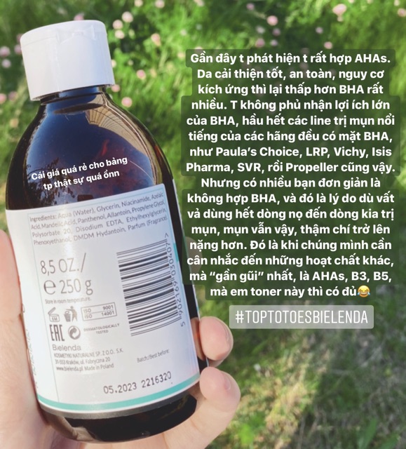 Như t đã bảo thì t rấtt thích line này, và nếu t cho e srm Dr.Medica 8/10 điểm, thì em toner này sẽ là 9/10, chỉ vì 10/10 thì nghe hơi “tâng bốc”, mà thật sự cả line t thích em toner này nhất=))) Em ấy là toner làm sạch kiêm cấp nước dưỡng ẩm, phù hợp mọi loại da, da dầu mụn, nhạy cảm, dễ kích ứng. Nếu với mục đích dùng để trị mụn, em srm phù hợp hỗ trợ trị mụn sưng viêm hơn, thì em toner này sẽ siêu ổn hỗ trợ điều trị cả da mụn sưng viêm và mụn ẩn, là một em toner các cậu có thể hoàn toàn yên tâm sử dụng khi đang rối bời không biết sản phẩm toner nào là dành cho da mình♥️ Với toner này thì chúng mình có thể đổ ra bông lau mặt hay đổ ra tay và vỗ lên da đều được, cá nhân t vẫn recommend việc đổ ra bông lau mặt hơn vì như vậy là extra được thêm 1 bước làm sạch . Hoặc hơn nữa thì lau 1 lần rồi vỗ 1 lần, da đủ tiêu chí vừa sạch vừa mềm ẩm phê pha=))) ____________ T có up kèm bảng tp e ấy để các cậu dễ check, các hoạt chất chủ đạo là: – Sự kết hợp giữa 2 cái tên vàng trong làng trị mụn : Niacinamide (B3) và D-panthenol (B5) làm dịu da, kháng viêm, giảm sưng, giảm mẩn đỏ, hỗ trợ trị mụn và phục hồi da hiệu quả. Niacinamide còn hỗ trợ làm mờ thâm và sẹo mụn, sáng da cực tốt + an toàn cho da mụn nhạy cảm. – Azelaic acid tiêu diệt vi khuẩn gây mụn, giảm viêm, giảm mẩn đỏ, hỗ trợ điều trị giãn mao mạch, giảm dày sừng da, làm da bóng và láng hơn. Topical azelaic acid được sử dụng trị mụn phổ biến không kém Salicylic acid (BHA) ấy các c ạ. Azelaic acid cũng có hiệu quả làm sáng da & mờ thâm mụn rất tốt nữa. – Mandelic acid với phân tử lớn giảm thiểu nguy cơ kích ứng, phù hợp da nhạy cảm, giúp kháng khuẩn, loại bỏ tế bào chết, làm thông thoáng lỗ chân lông & se lcl hiệu quả, từ đó hỗ trợ kháng & điều trị mụn, giảm thâm, các nếp nhăn nhỏ, chống lão hoá, làm đều màu da – Allantoin & Glycerin làm dịu, dưỡng ẩm nhẹ nhàng cho làm da mềm mượt. Toner có mùi khá nhẹ nhàng, apply lên da mịn mượt dễ chịu, không hề cho cảm giác châm chích, ngứa hay nóng da. T đánh giá hiệu quả làm sạch, láng da của em này cao hơn hiệu quả dưỡng ẩm, nên các cậu vẫn có thể double toner với toner cấp ẩm nếu muốn. Em này cũng có hiệu quả điều tiết hoạt động tuyến dầu giảm tiết bã nhờn khá rõ, nhất là khi kết hợp các sp cùng line, nhưng vẫn phù hợp mọi loại da chứ không chỉ da dầu, và có hiệu quả kháng & trị mụn luôn ấy.